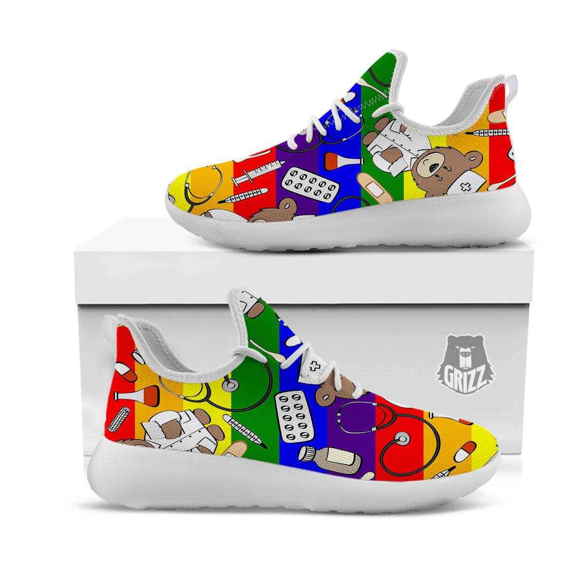 Looking for a unique Athletic Shoes? Check out our Rainbow Color LGBT Teddy Bear Nurse White Athletic Shoes at Grizzshopping. Our Athletic Shoes are handcrafted to the highest quality standards that custom made for you Lightweight construction with breathable mesh fabric for maximum comfort and performance.