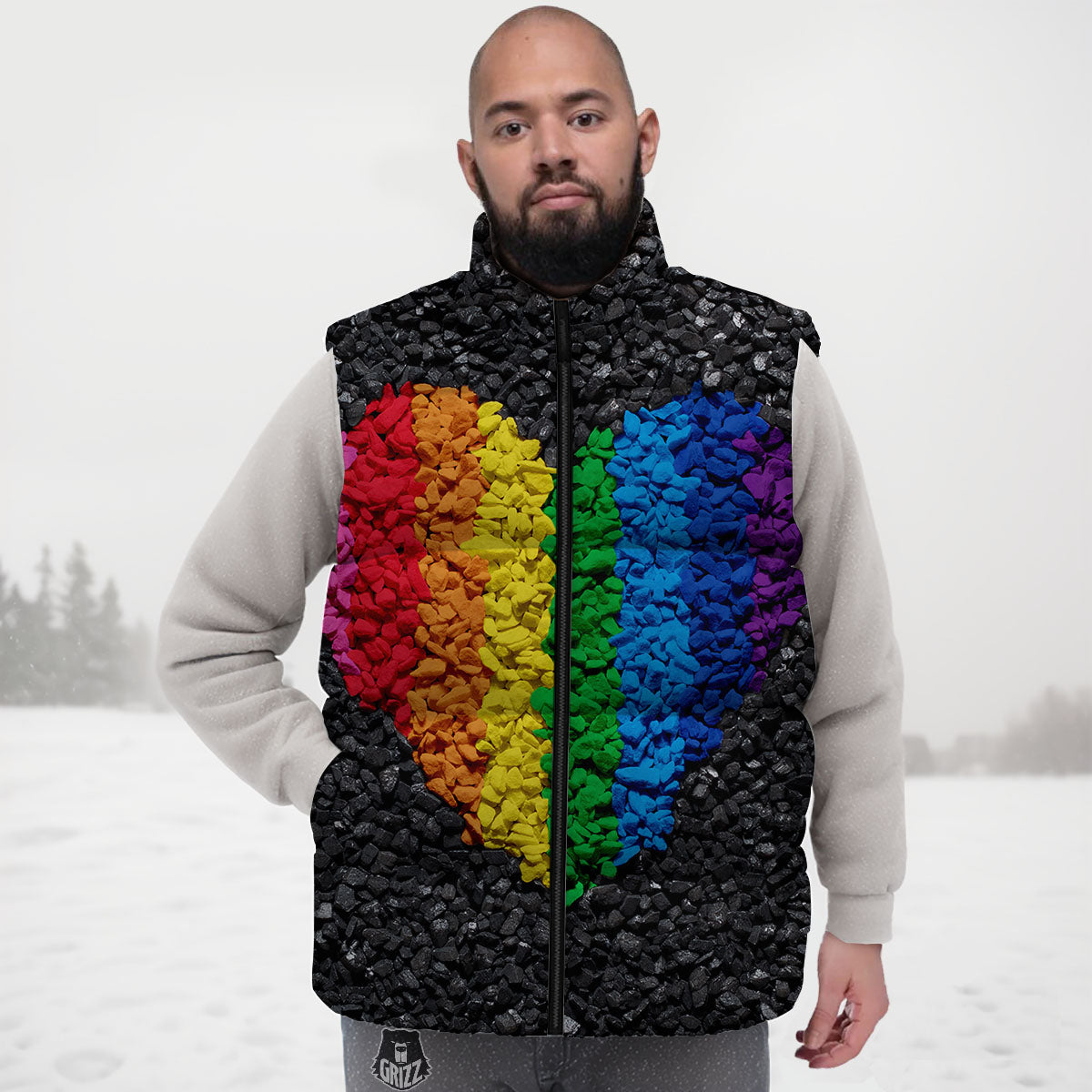 Looking for a unique Down Vest? Check out our Rainbow Heart Stones LGBT Pride Print Down Vest at Grizzshopping. Our down vest are handcrafted to the highest quality standards that custom made for you