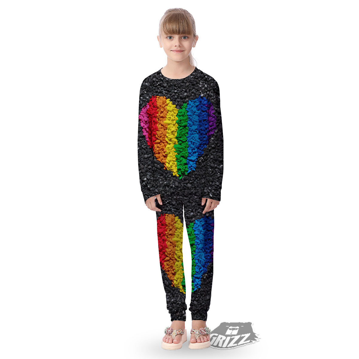 Rainbow Heart Stones LGBT Pride Print Kid's Pajamas