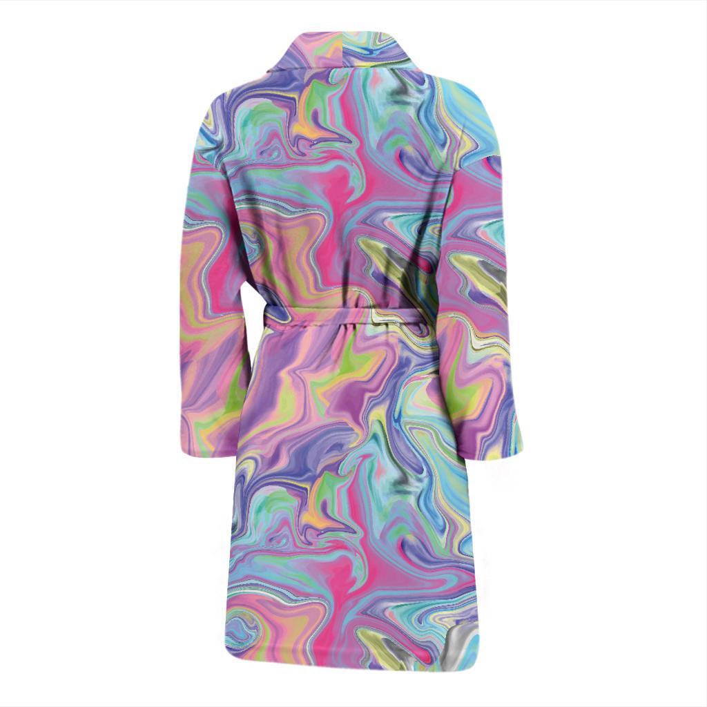 Rainbow Marble Pattern Print Men Long Robe