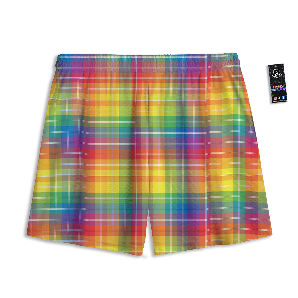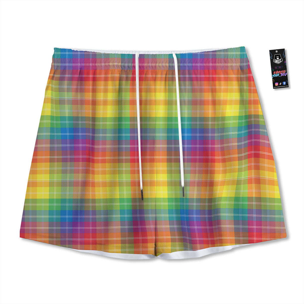 Rainbow Plaid LGBT Pride Print Pattern Mesh Shorts