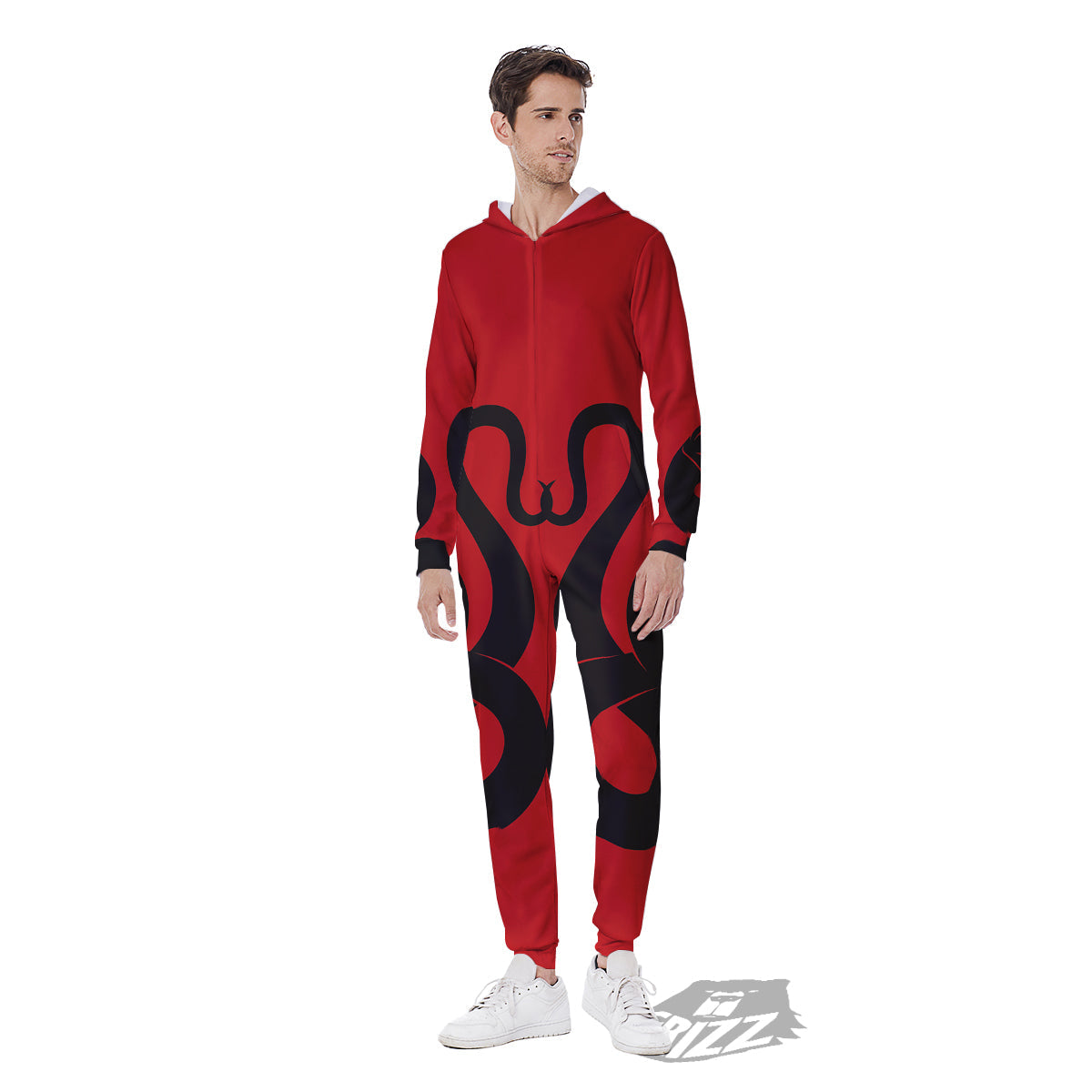 Red And Black Snakes Sign Print Men's Jumpsuit