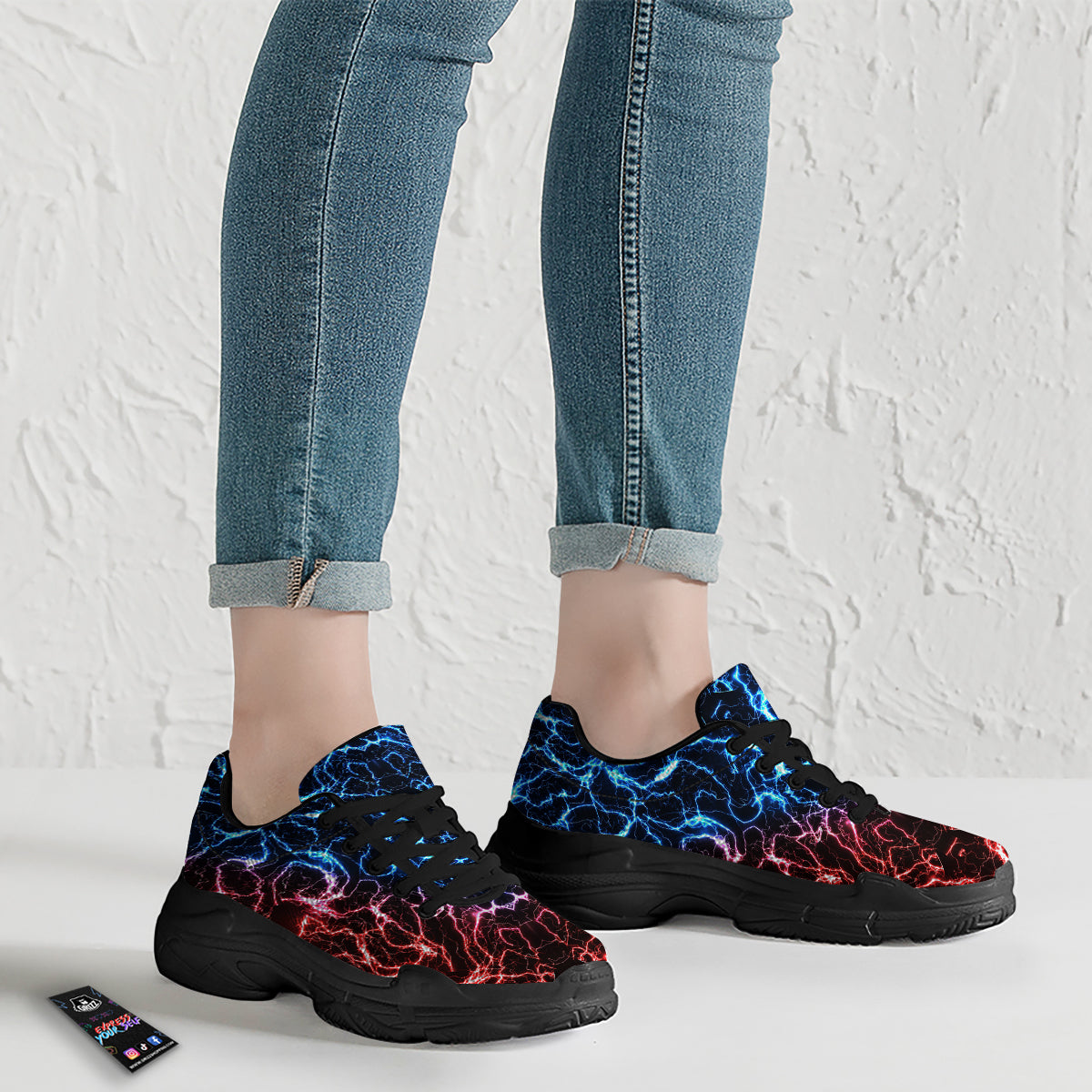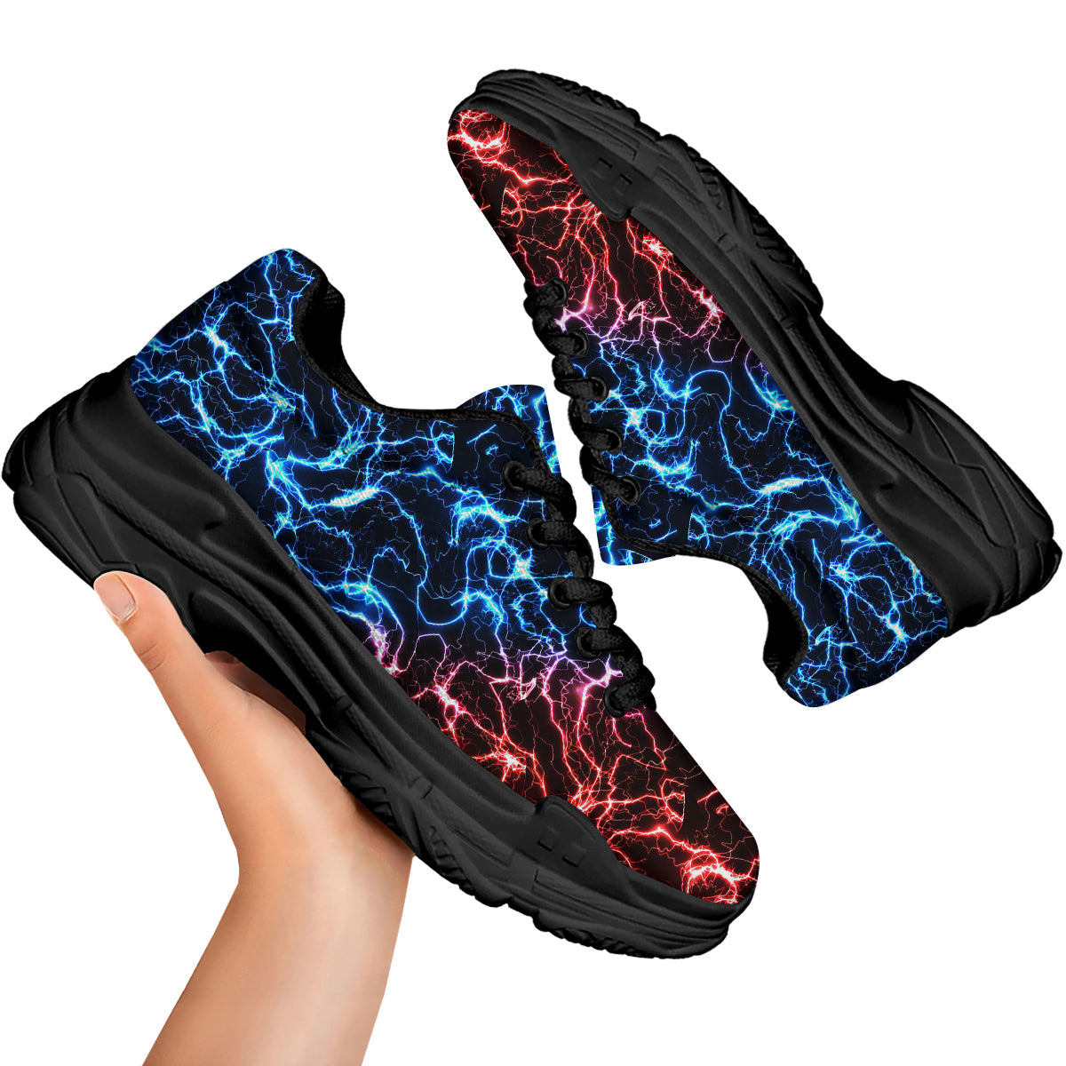 Looking for unique chunky shoes? Check out our Red And Blue Electrical Print Black Chunky Shoes at Grizzshopping. Our chunky shoes are handcrafted to the highest quality standards that custom made for you