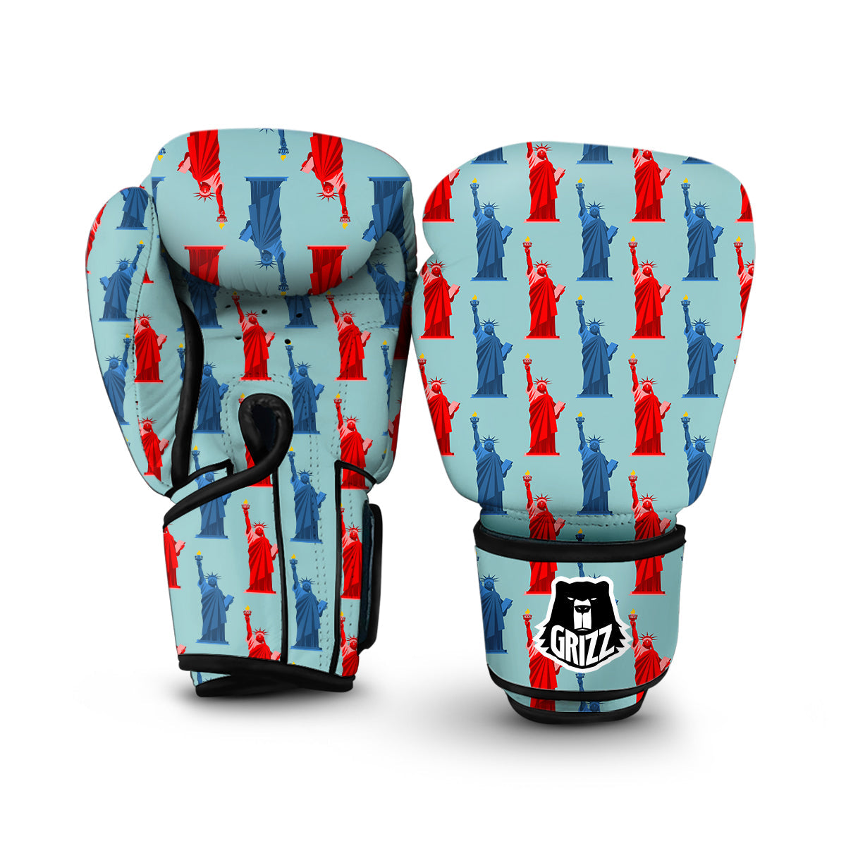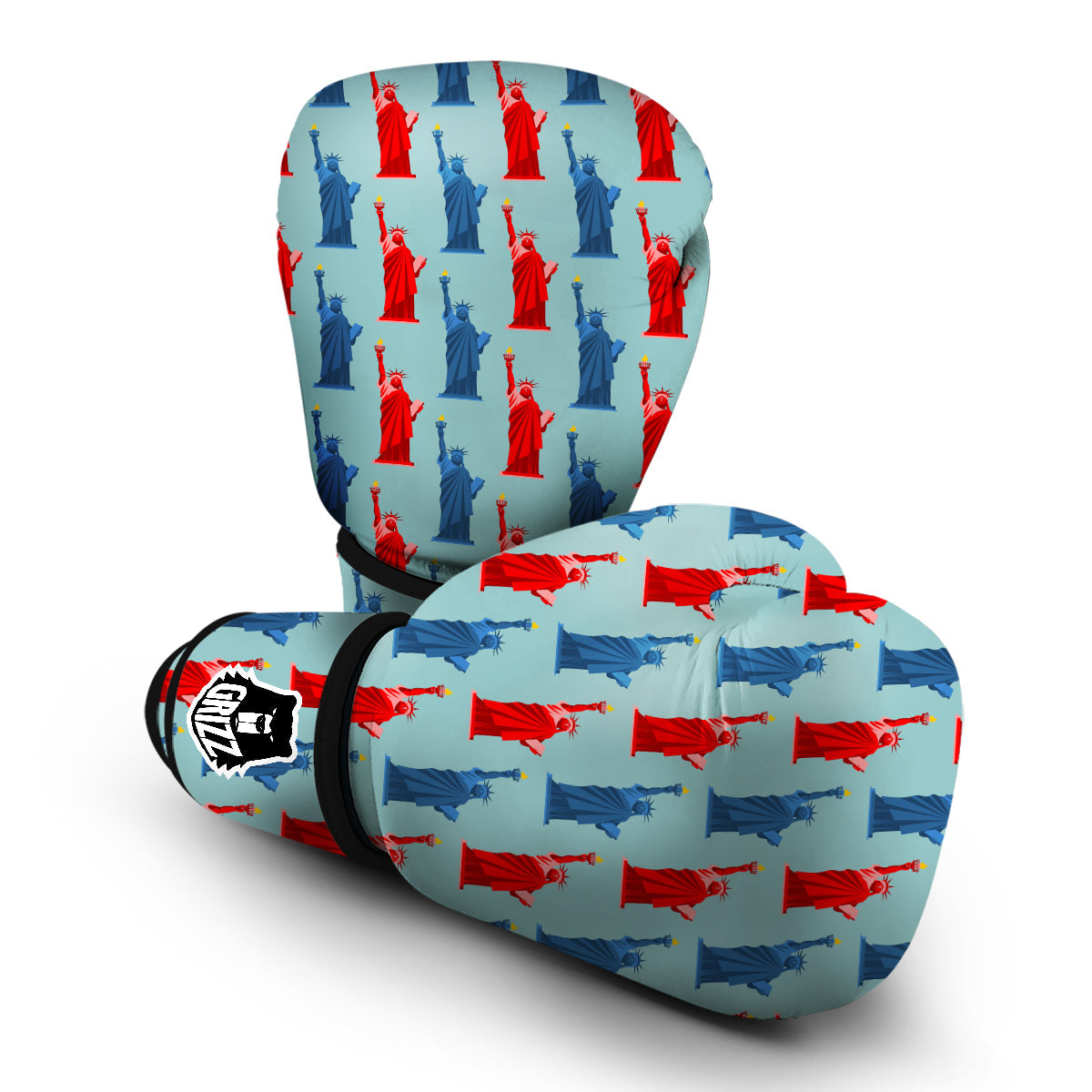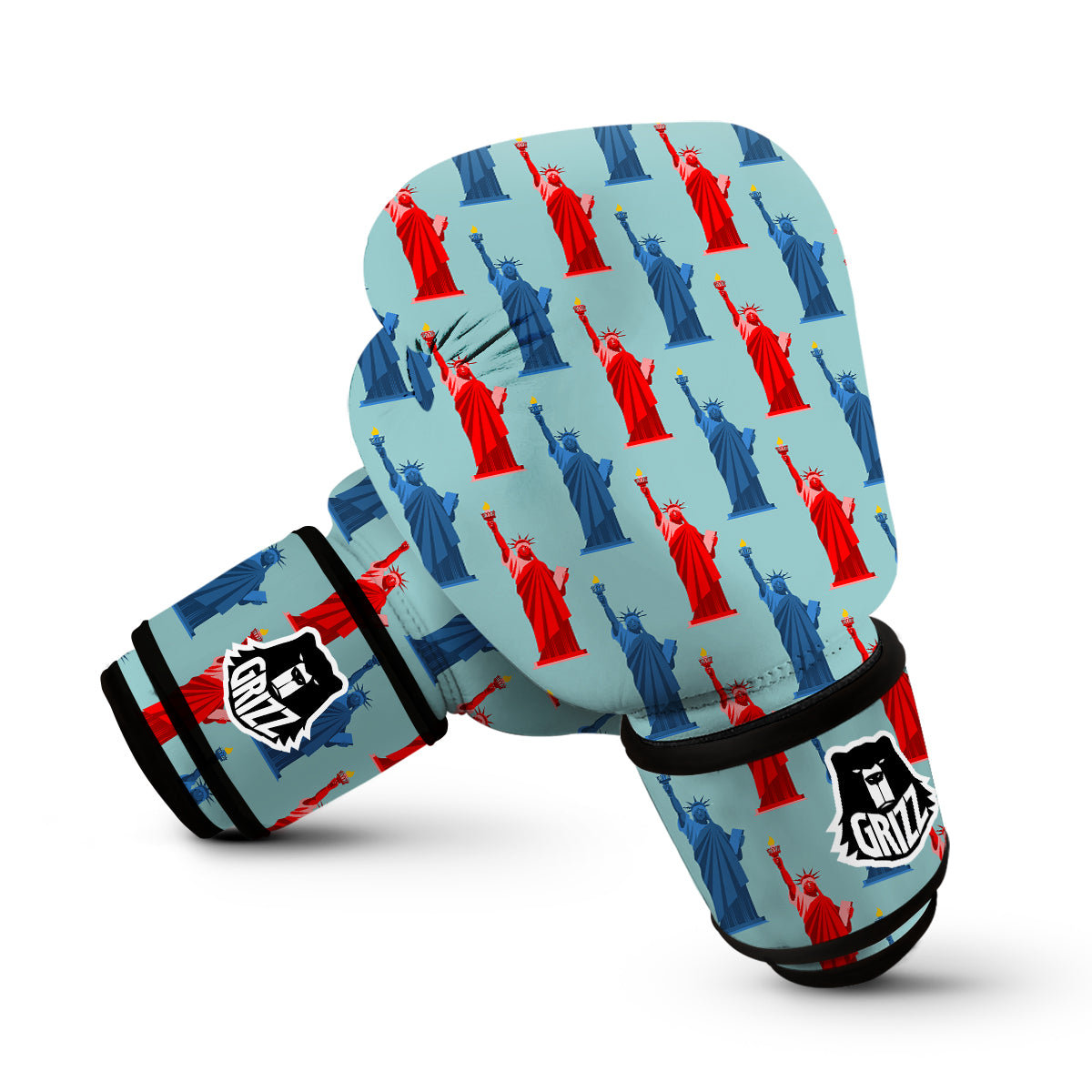 Red And Blue Statue Of Liberty Print Pattern Boxing Gloves