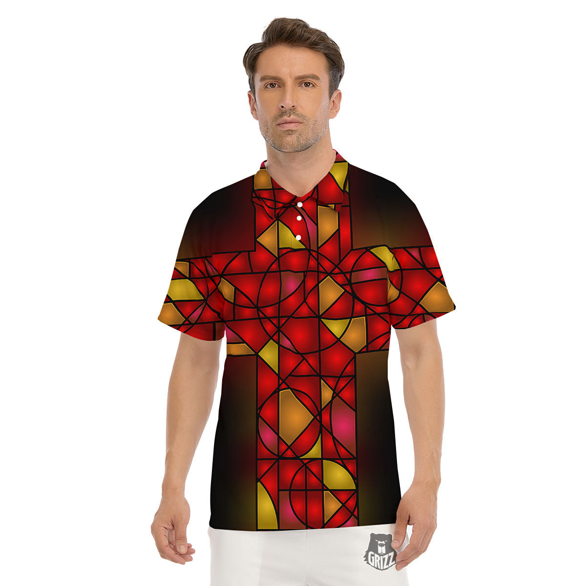 Looking for a unique Golf Shirt? Check out our Red And Orange Cross Stained Glass Print Men's Golf Shirts at Grizzshopping. Our Golf Shirts? are handcrafted to the highest quality standards that custom made for you