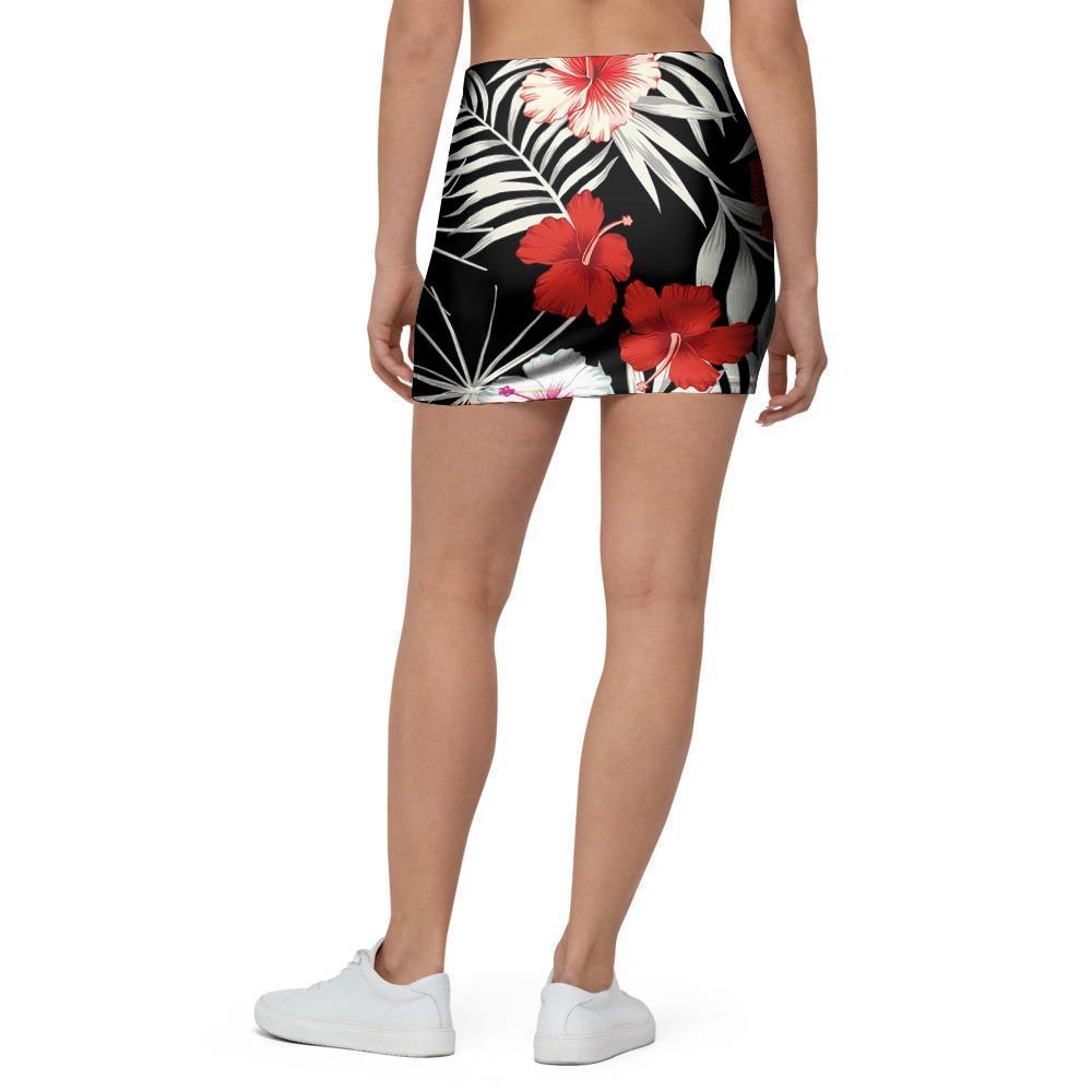 Red And White Hibiscus Flowers Hawaiian Print Mini Skirt