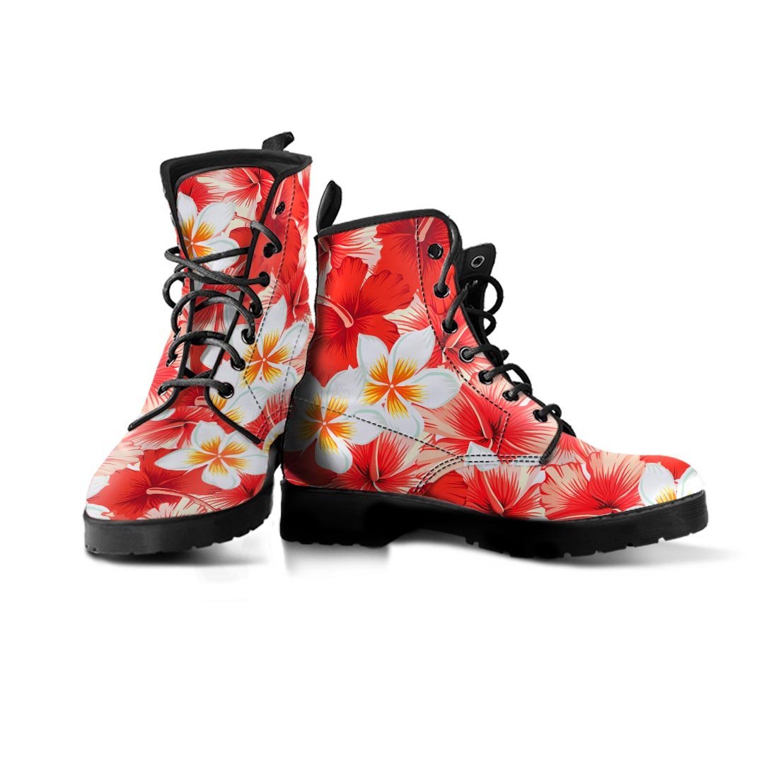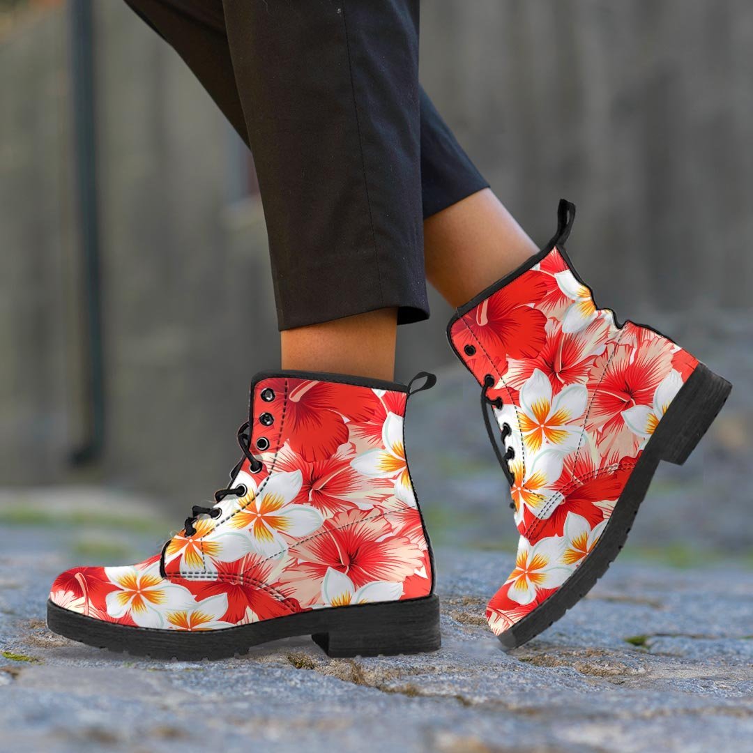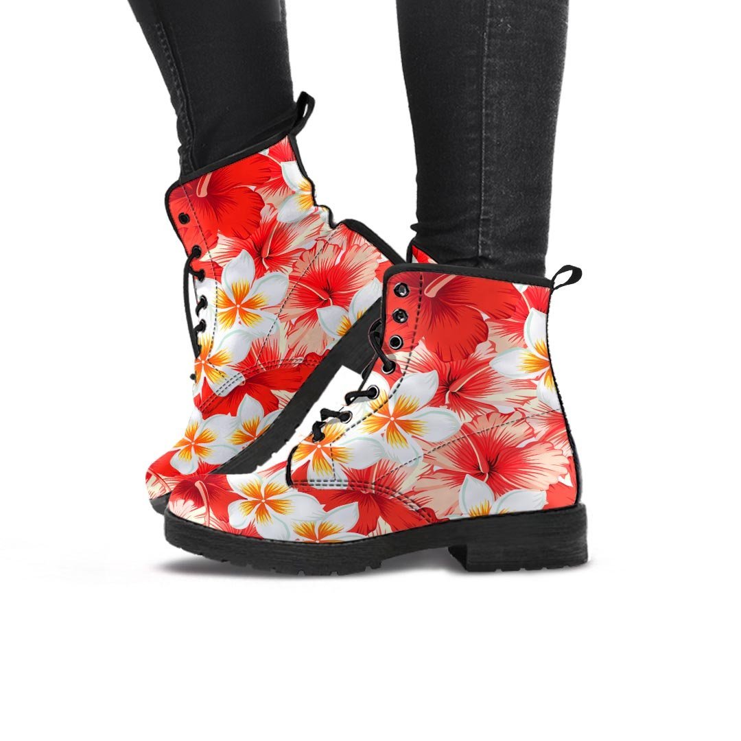 Red And White Hibiscus Hawaiian Print Women's Boots