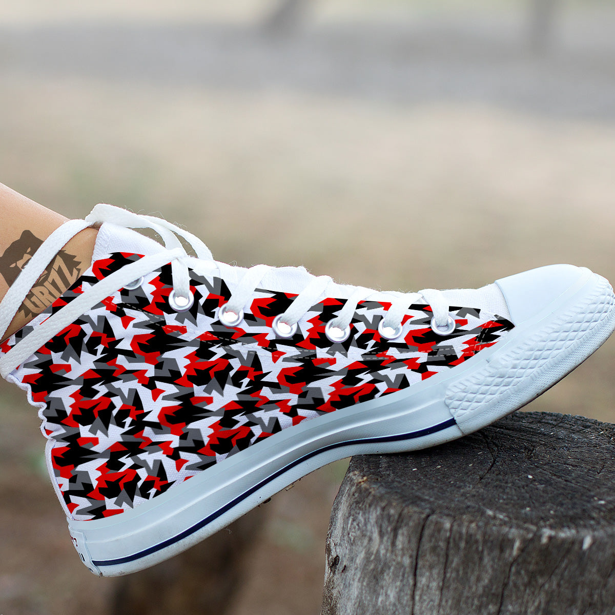 Red Geometric Camouflage Print Pattern White High Top Shoes