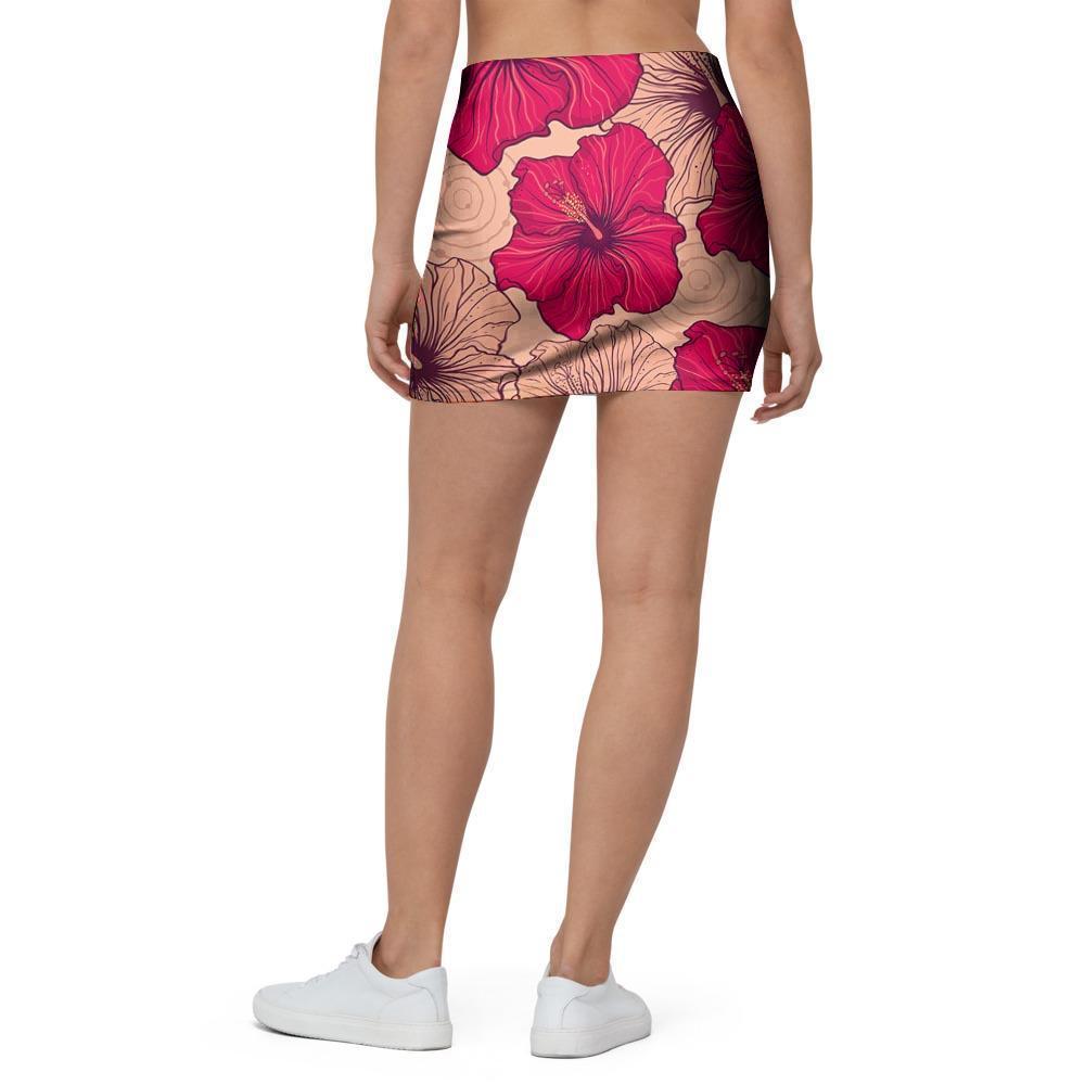 Red Hibiscus Flower Print Mini Skirt