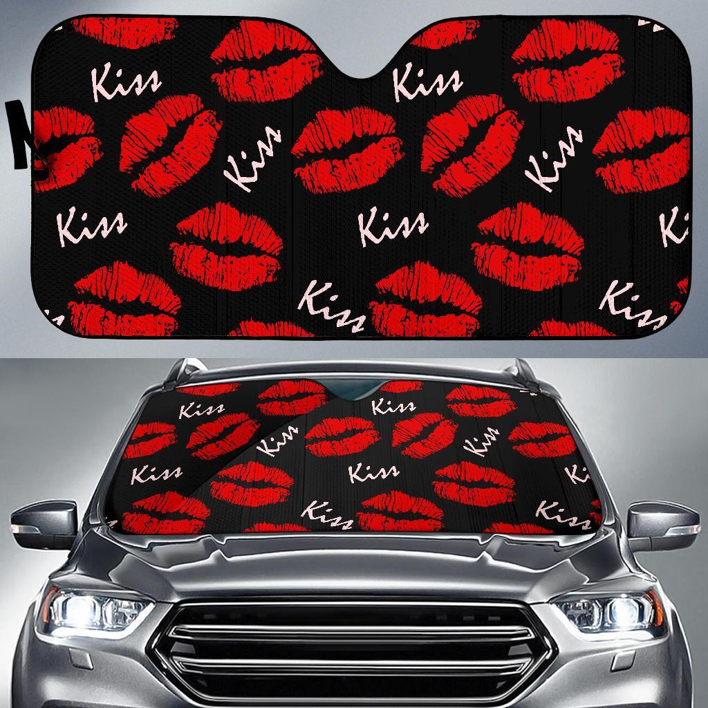 Red Lips Kiss Pattern Print Car Sun Shade