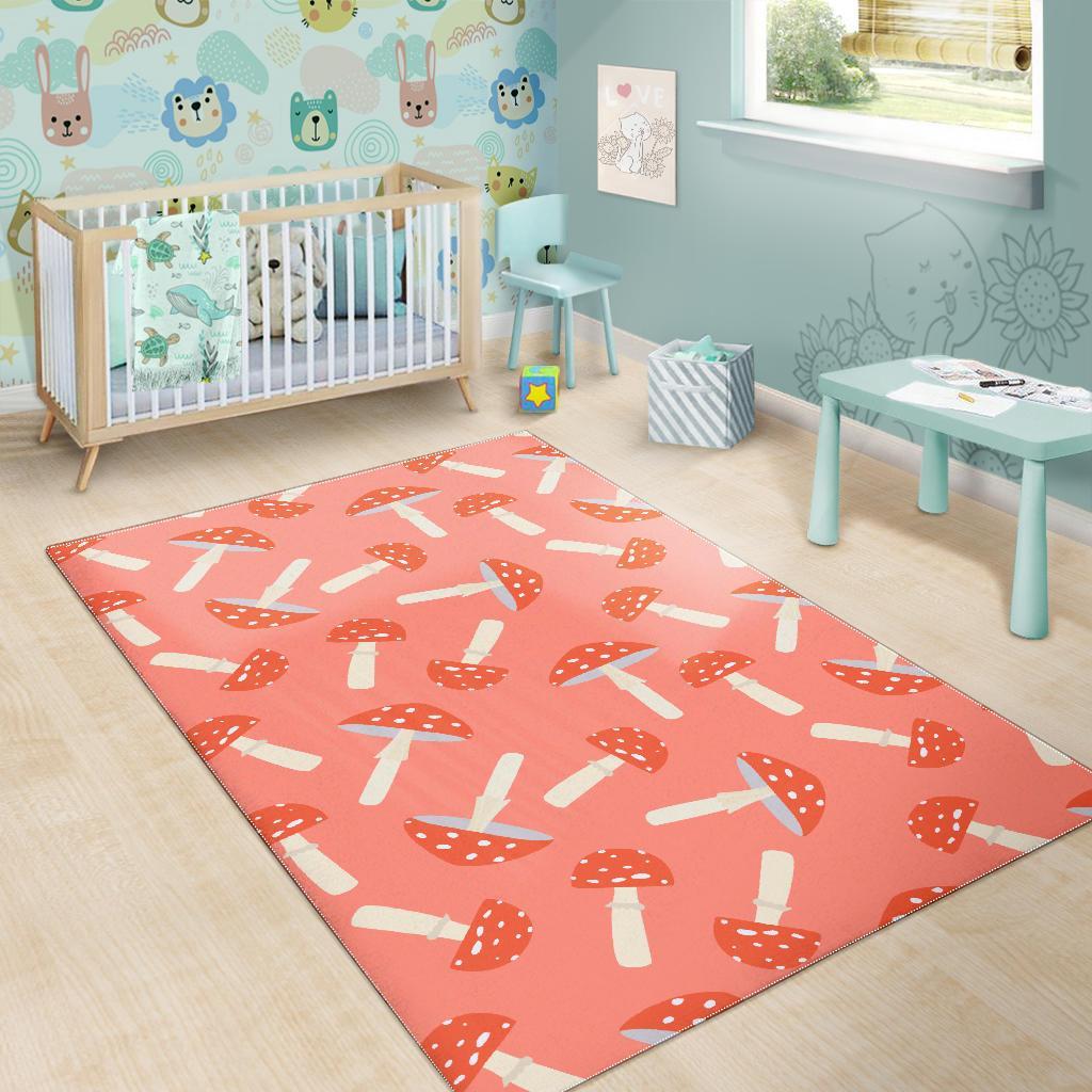 Red Mushroom Dot Pattern Print Floor Mat