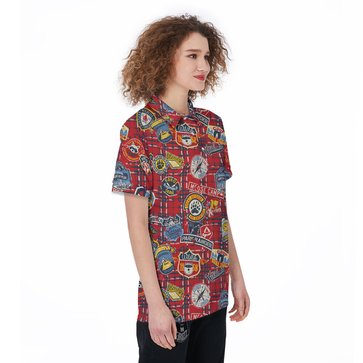 Red Plaid Mountain Camp Tartan Print Women's Golf Shirts