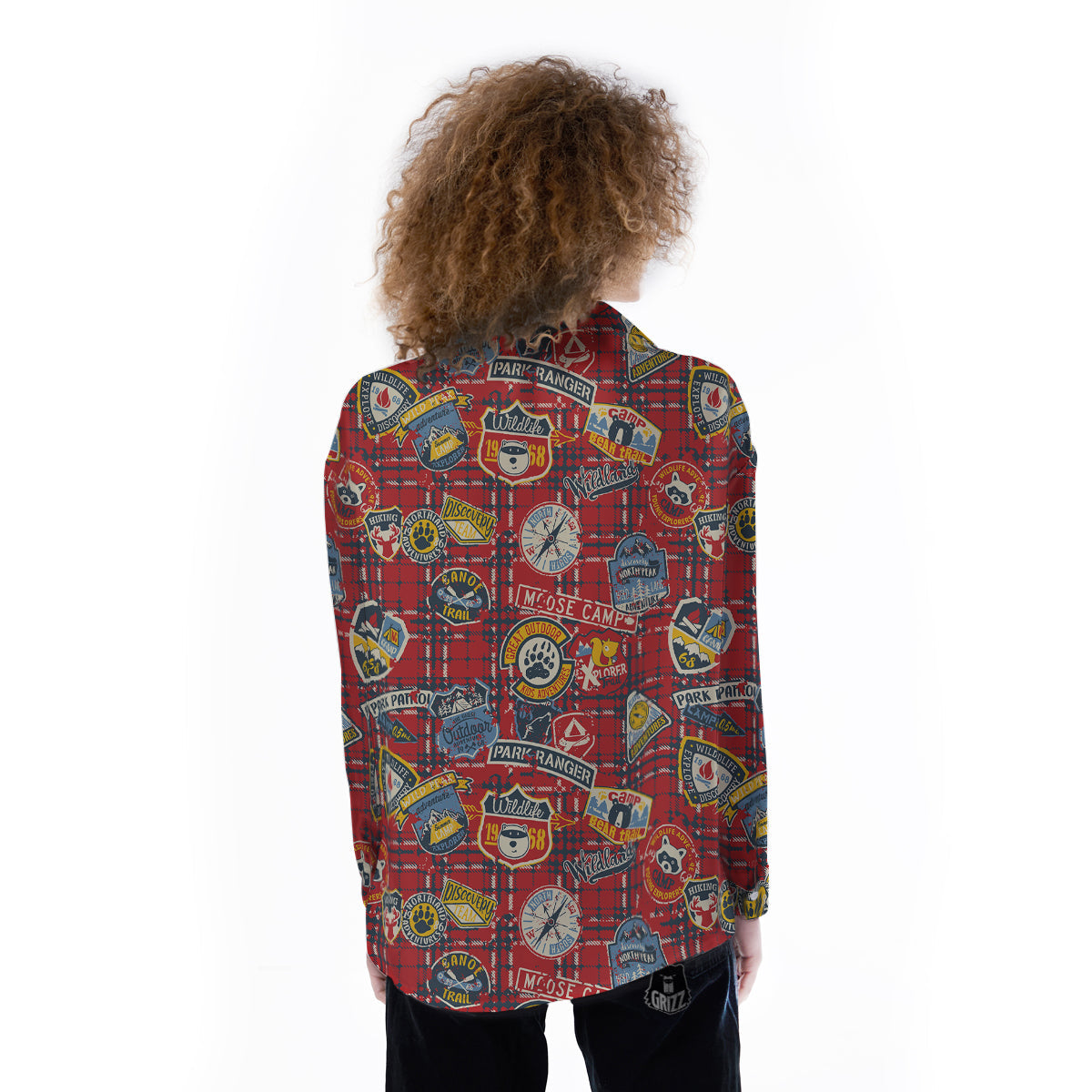 Red Plaid Mountain Camp Tartan Print Women's Long Sleeve Shirts