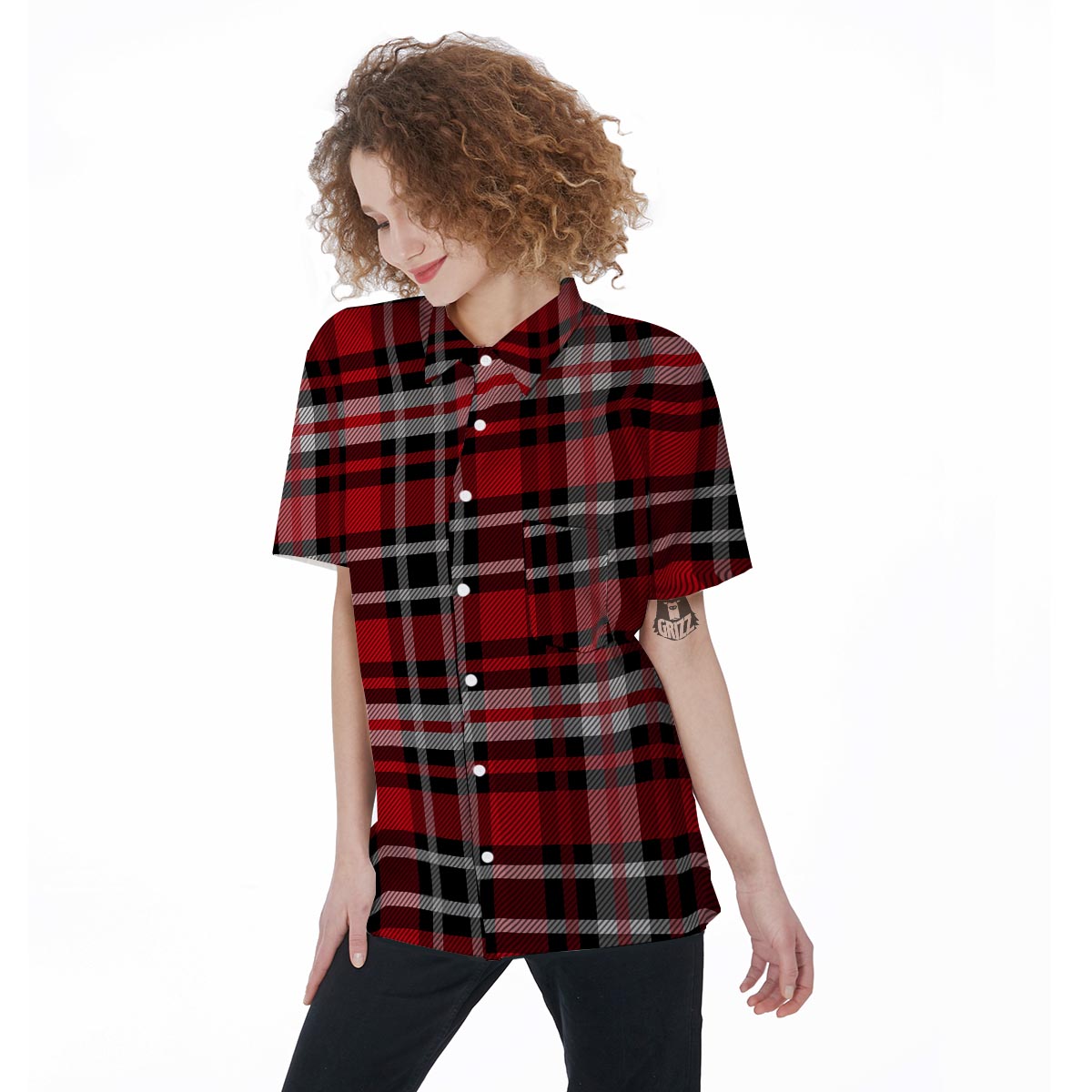 Red Plaid Tartan Print Women's Short Sleeve Shirts