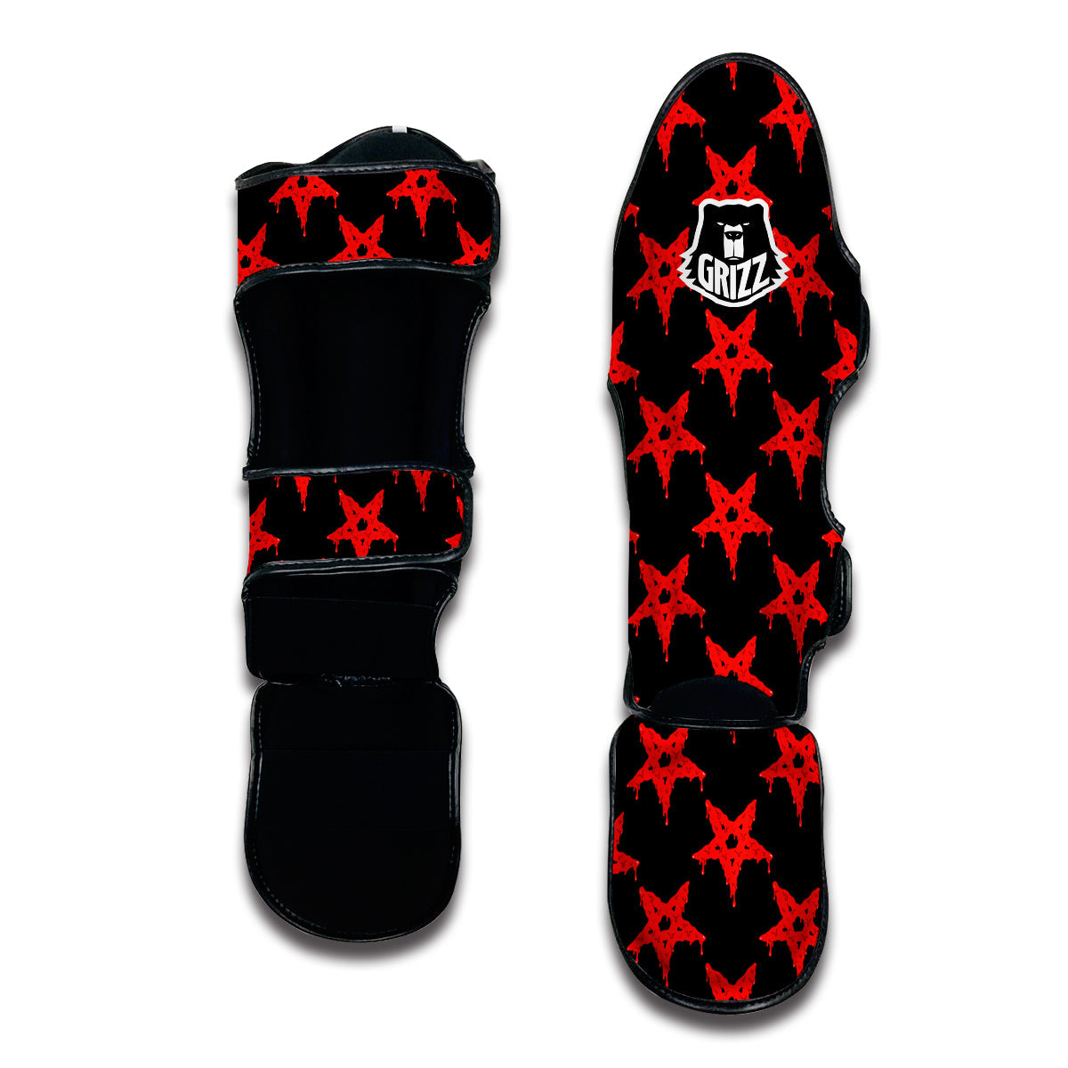 Red Star Demon Pentagram Print Pattern Muay Thai Shin Guards