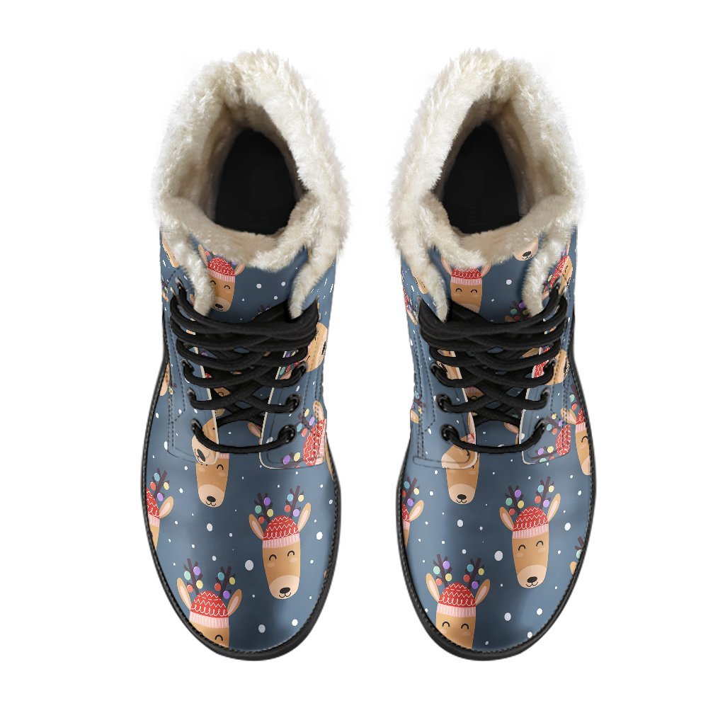 Reindeer Christmas Print Pattern Comfy Winter Boots