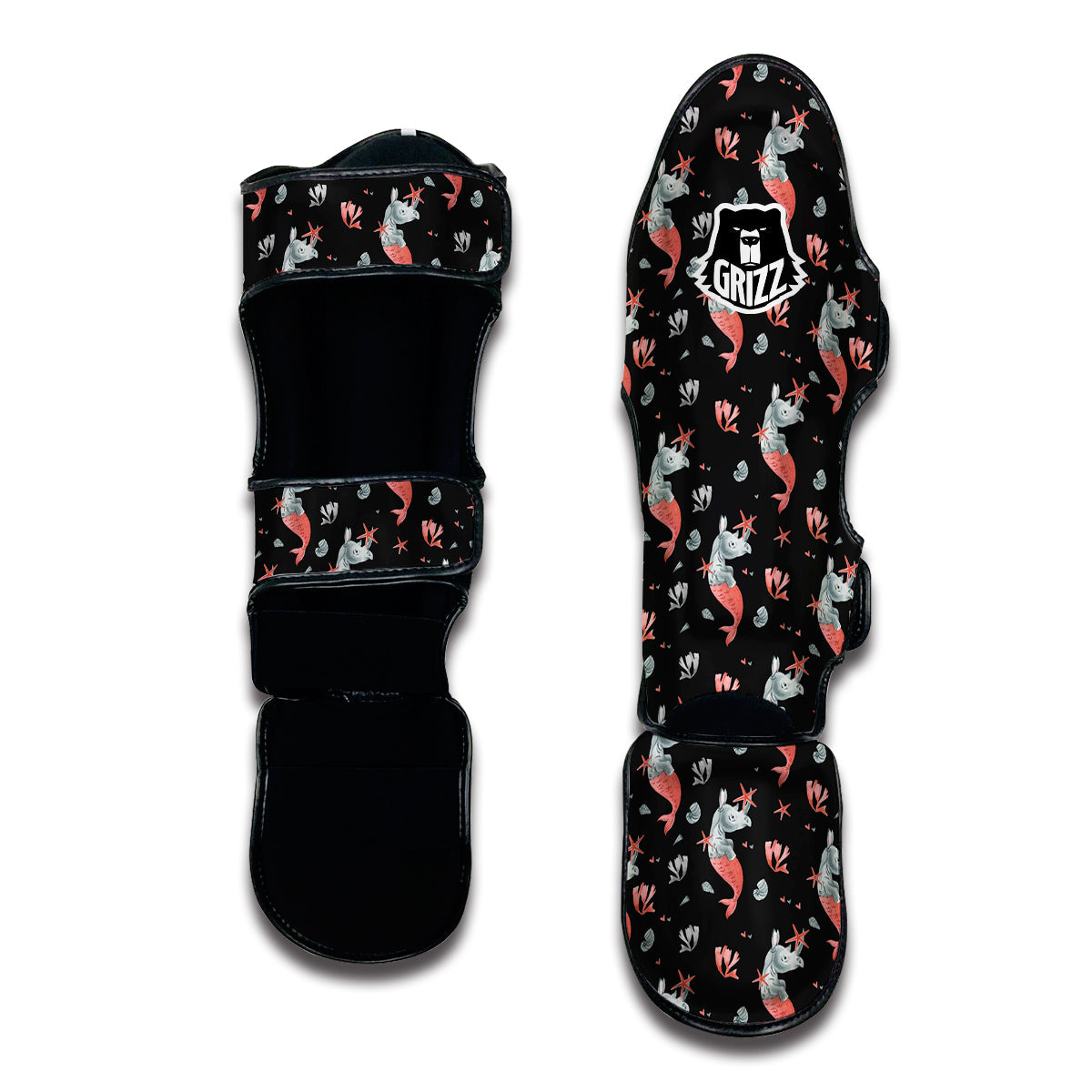 Looking for a unique shin guards? Check out our Rhino Mermaid Print Pattern Muay Thai Shin Guards at Grizzshopping. Our shin guards are handcrafted to the highest quality standards that custom made for you