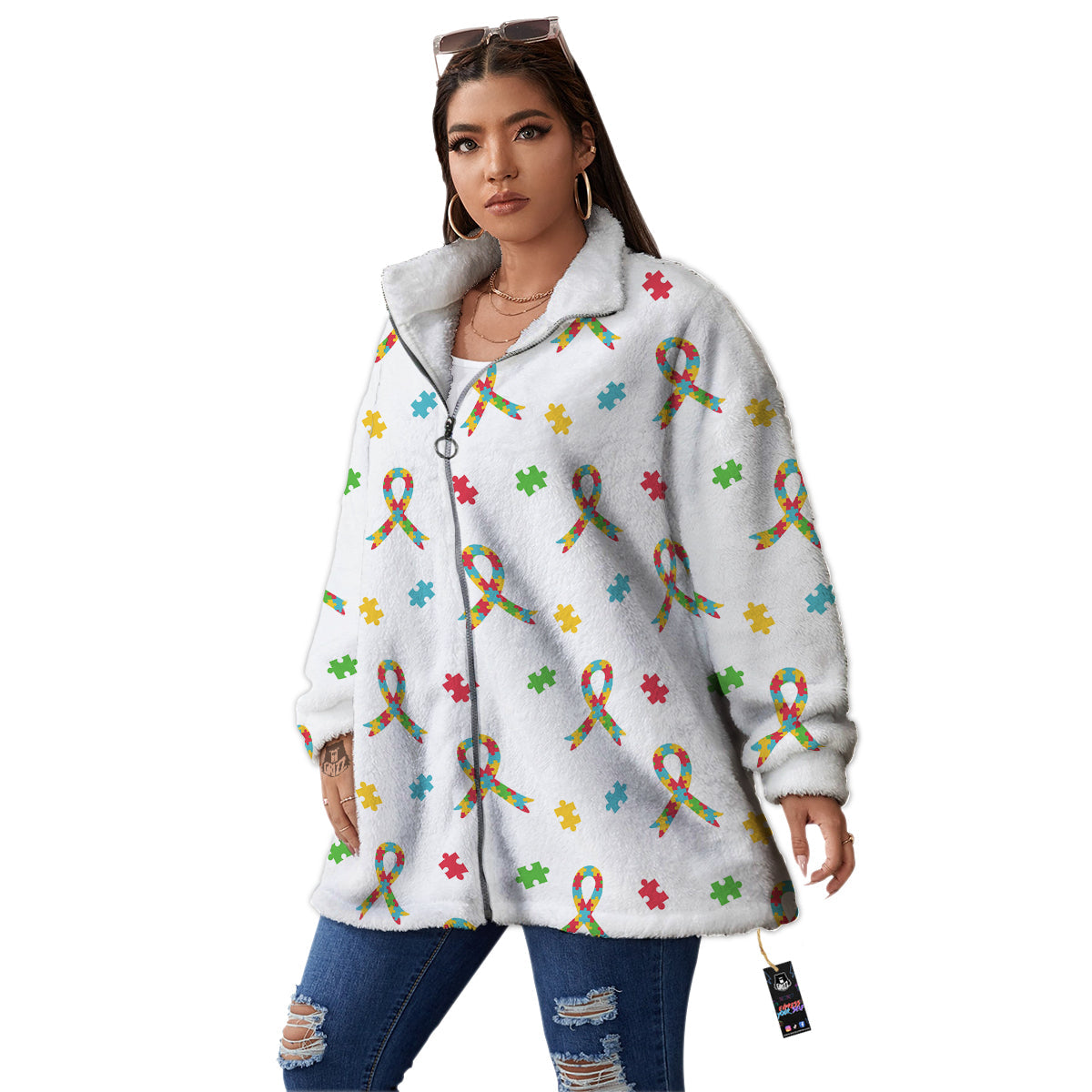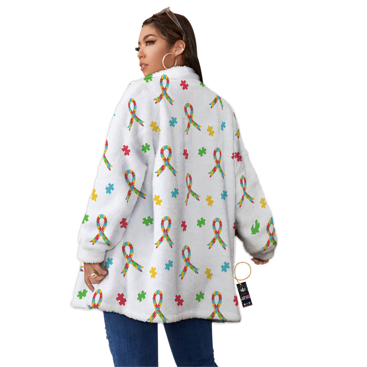 Ribbon Autism Awareness Print Pattern Women's Sherpa Jacket