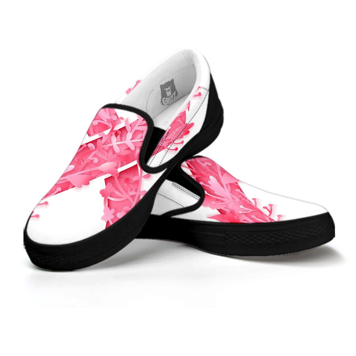 Ribbon Flower Pink Breast Cancer Print Black Slip On Shoes