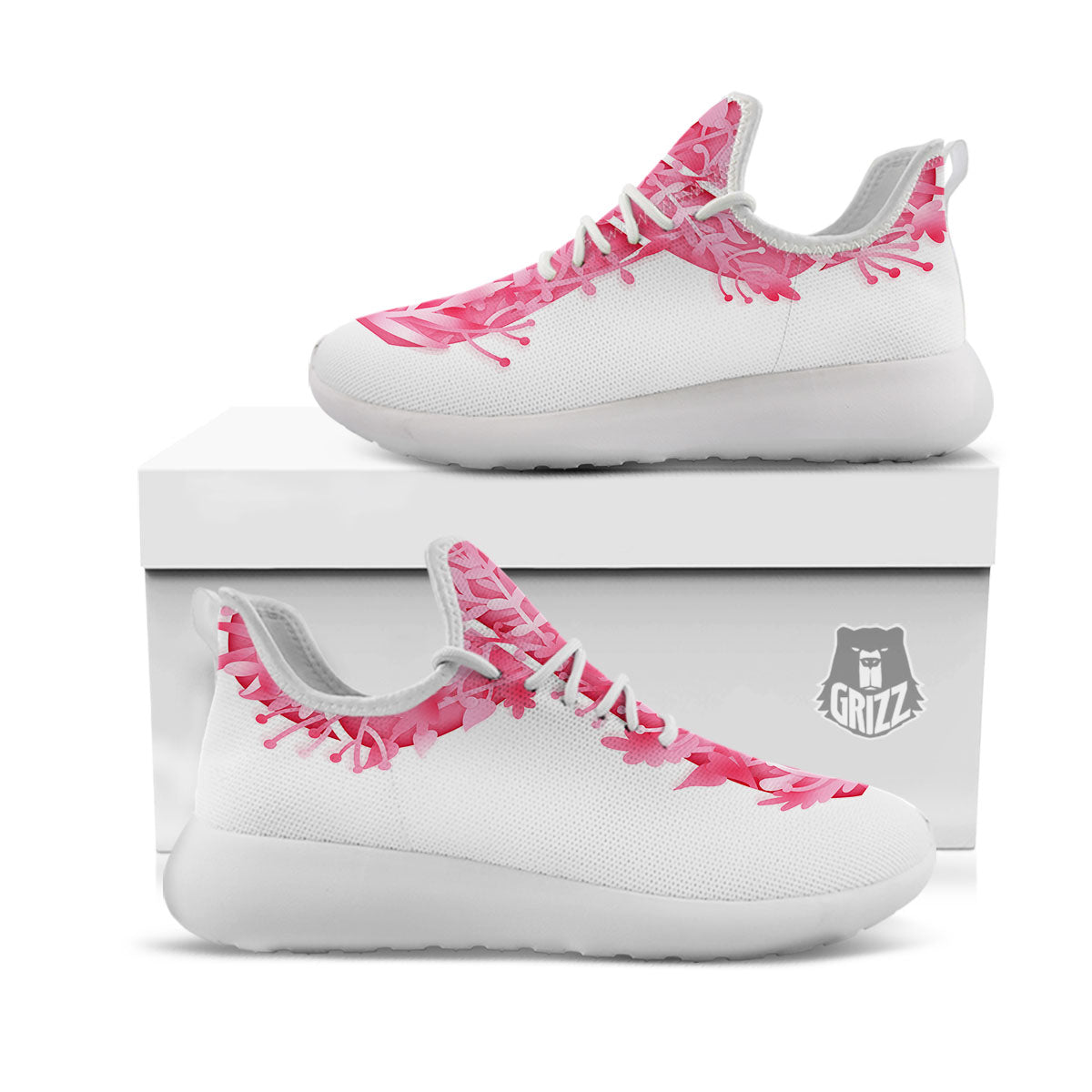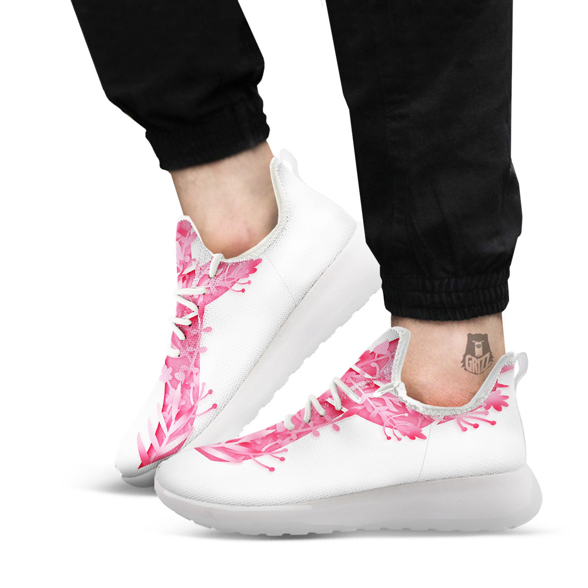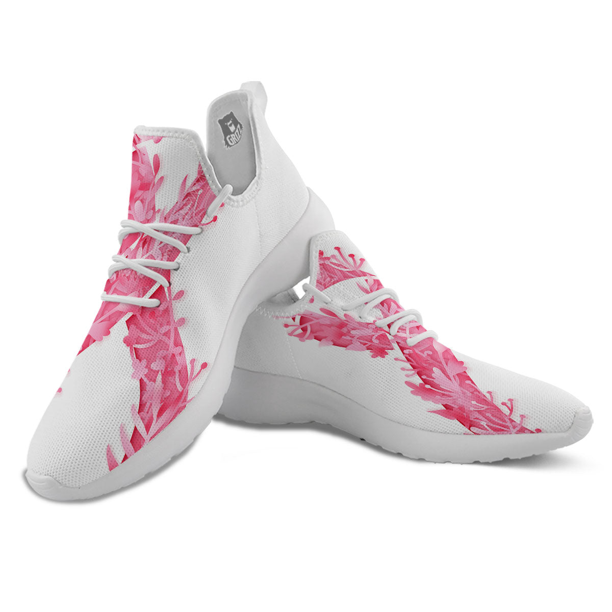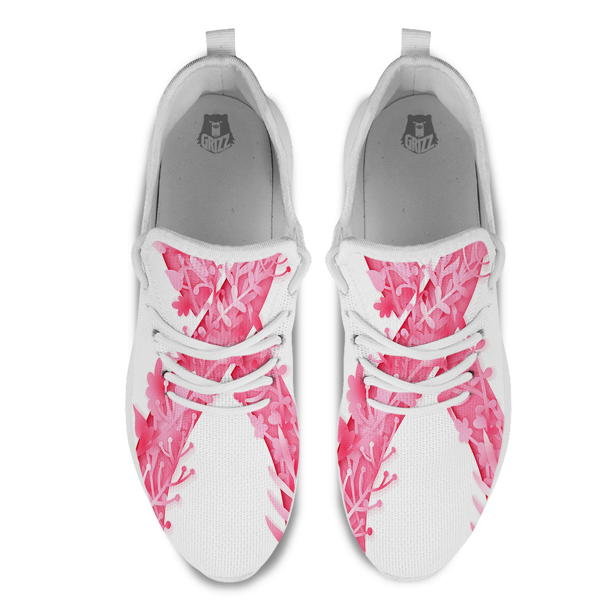 Ribbon Flower Pink Breast Cancer Print White Athletic Shoes