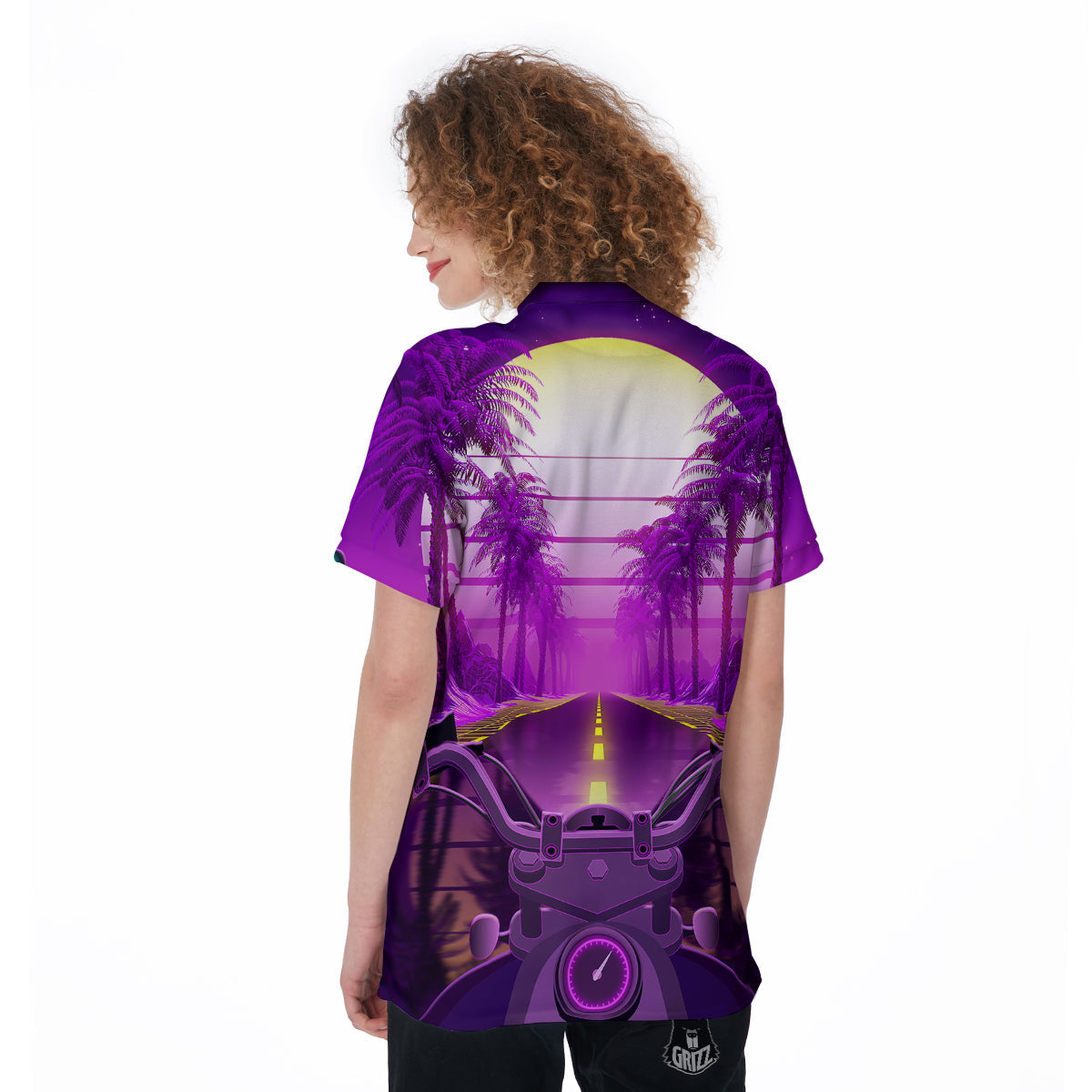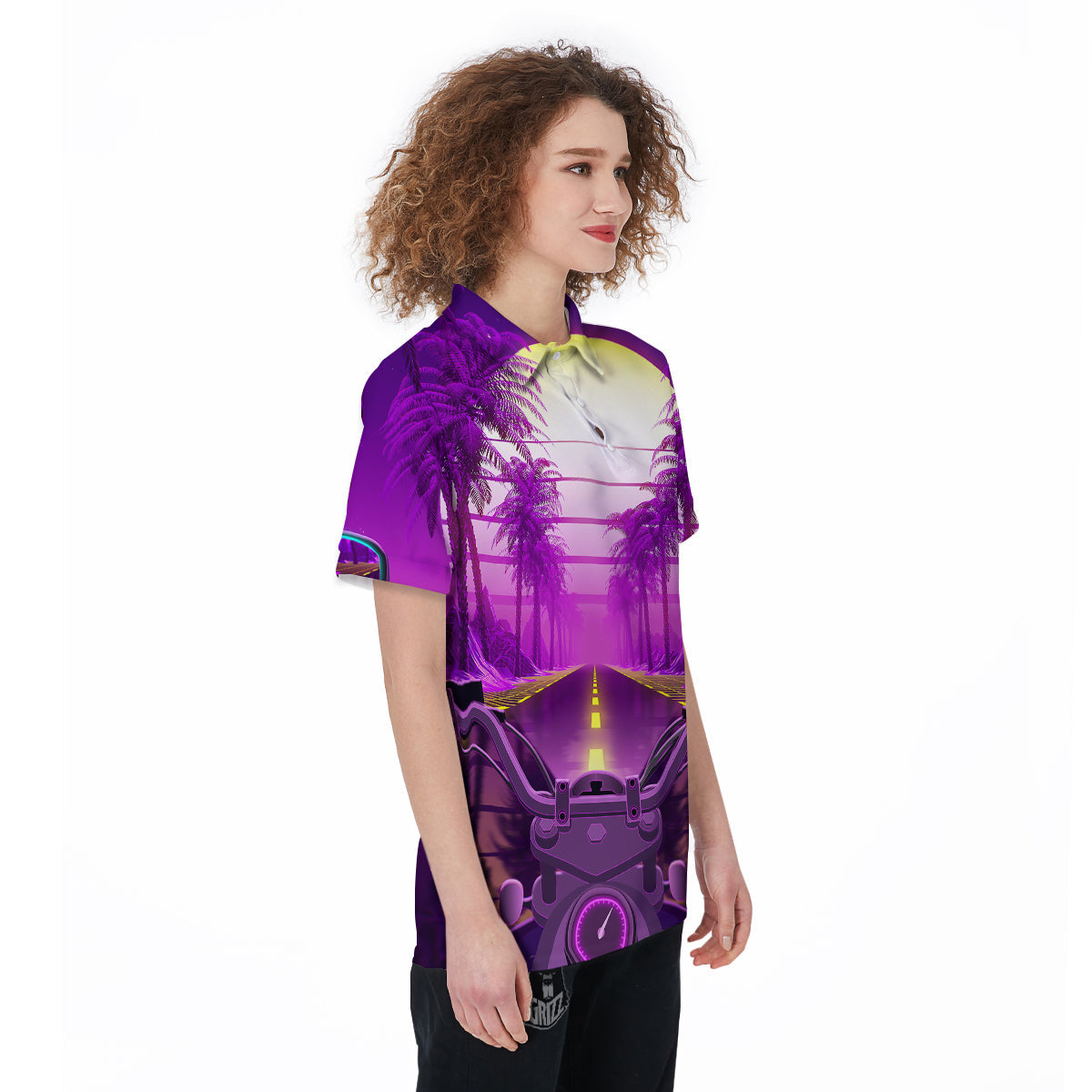 Riding Motorcycle Retro Purple Print Women's Golf Shirts
