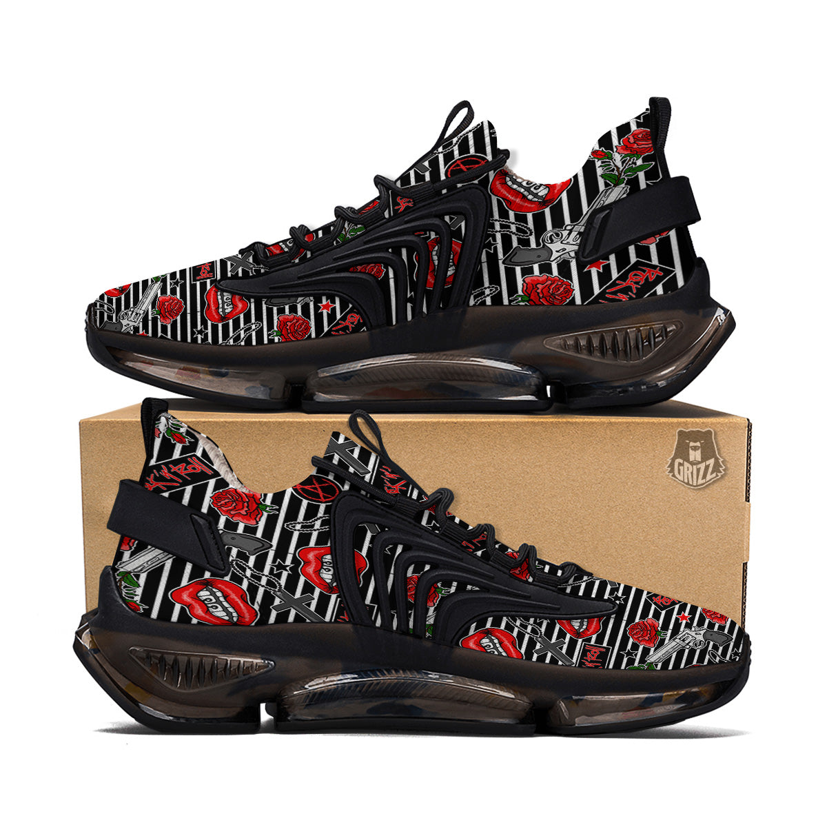 Rock’N’Roll Stiped Black White Print Pattern Black Gym Shoes