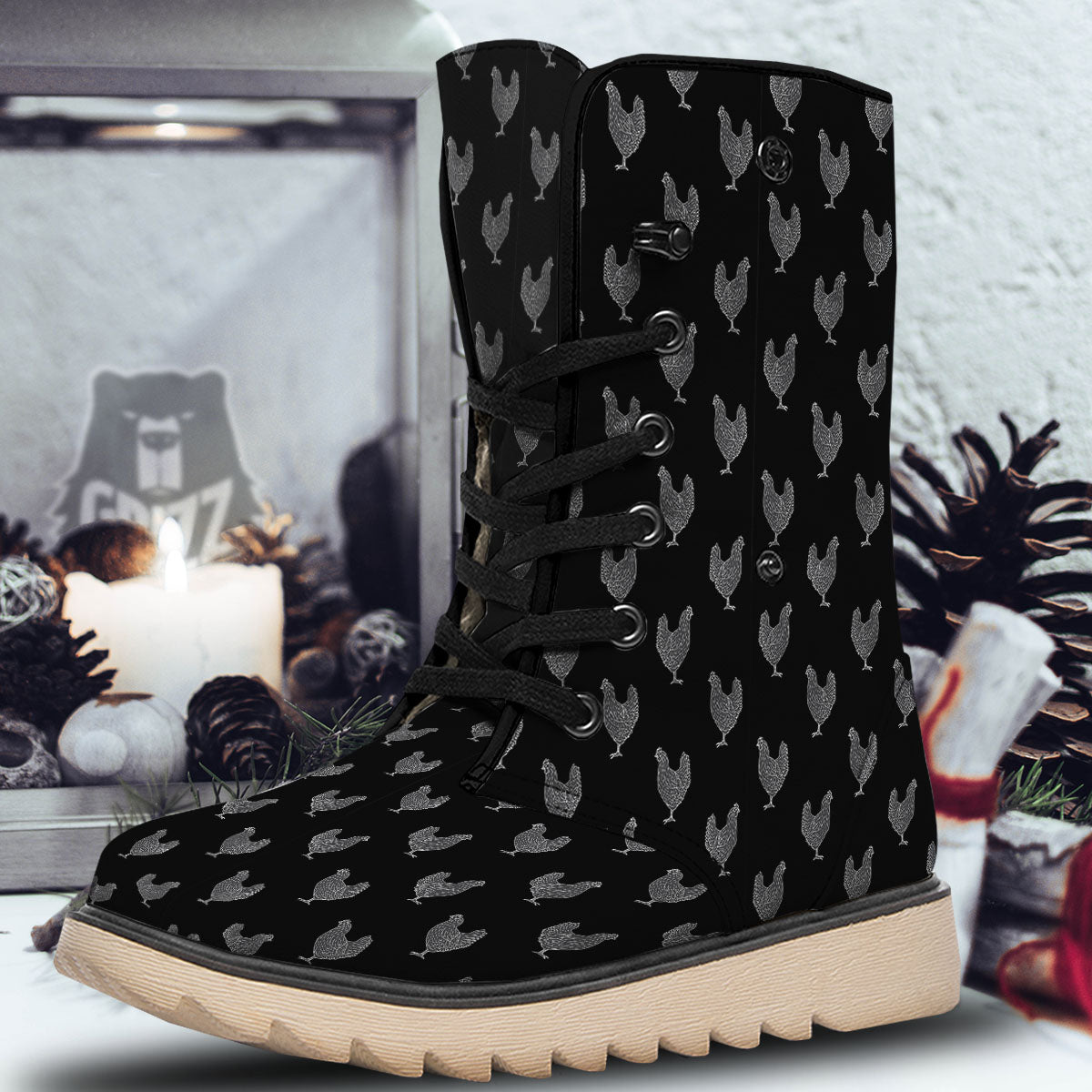 Looking for unique snow boots? Check out our Rooster Black And White Print Pattern Snow Boots at Grizzshopping. Our snow boots are handcrafted to the highest quality standards that custom made for you