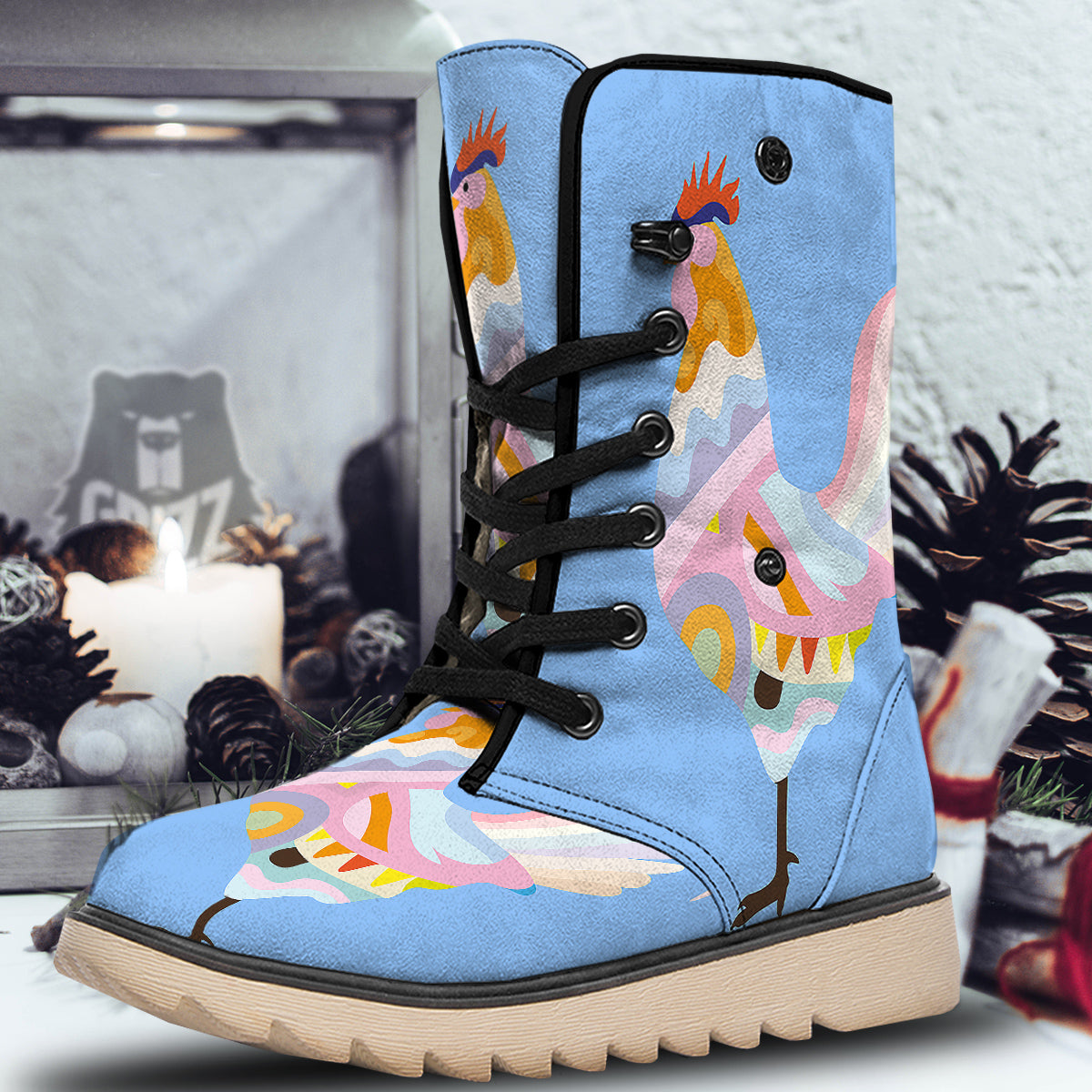 Looking for unique snow boots? Check out our Rooster Colorful Print Snow Boots at Grizzshopping. Our snow boots are handcrafted to the highest quality standards that custom made for you