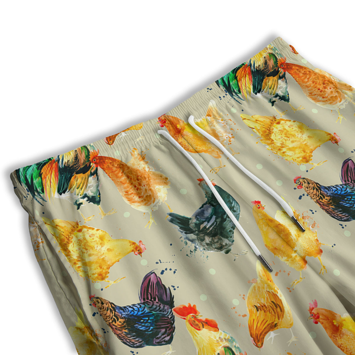 Rooster Watercolor Print Pattern Men's Athletic Shorts