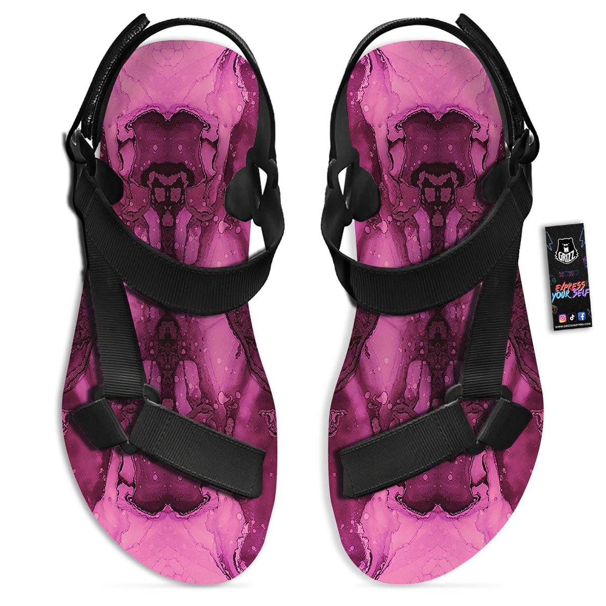 Rose Kaleidoscope Pink Print Black Open Toe Sandals