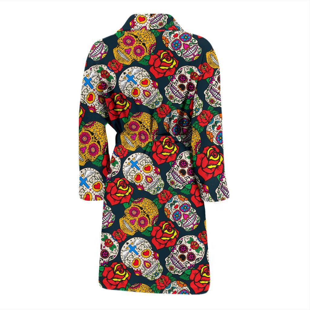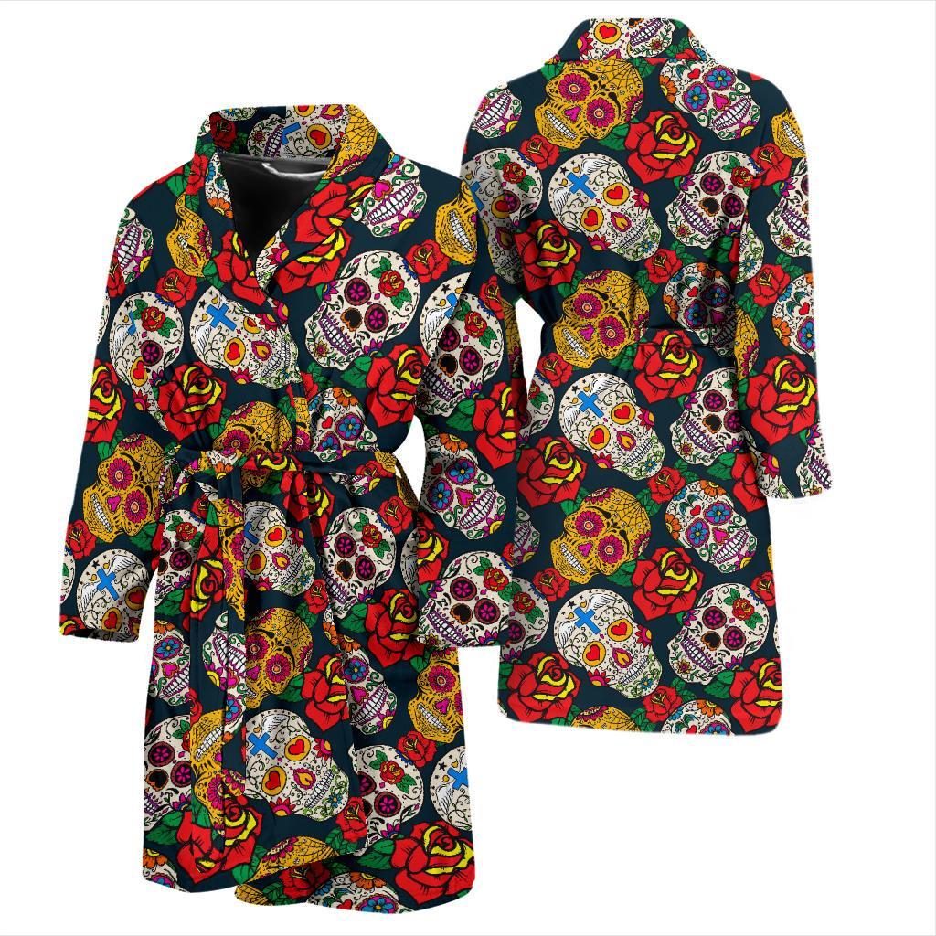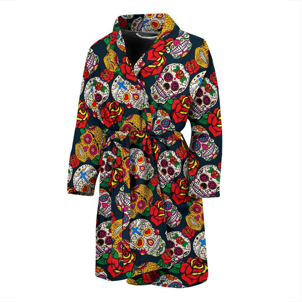 Rose Sugar Skull Skeleton Girly Floral Pattern Print Men Long Robe