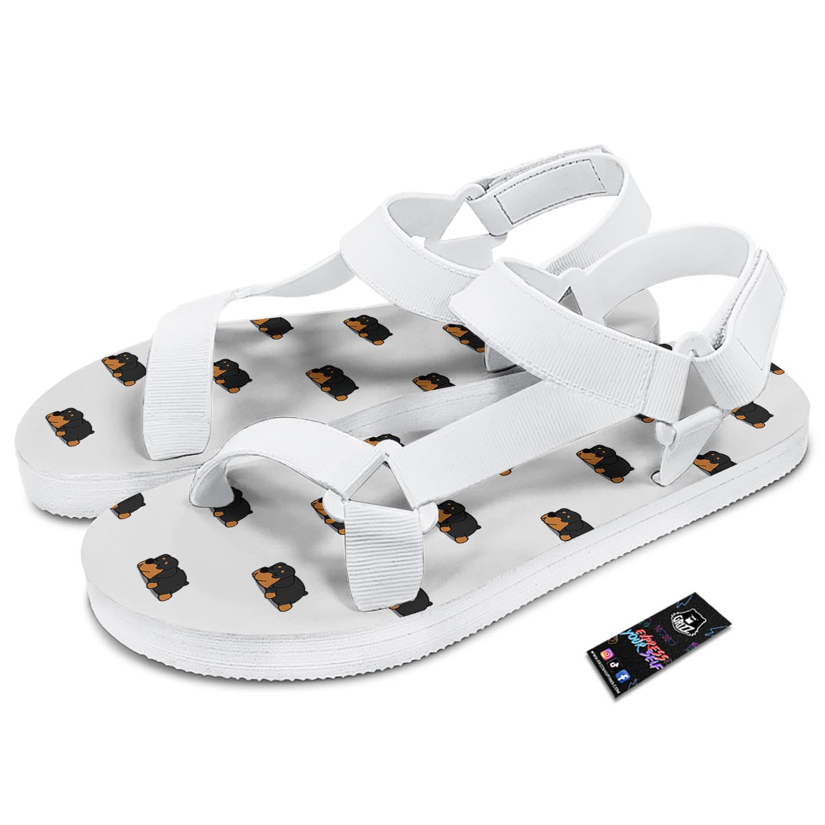 Rottweiler Sleeping Print Pattern White Open Toe Sandals