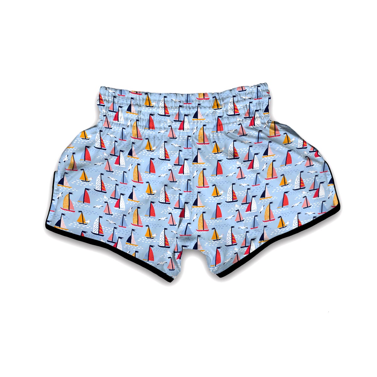 Sailboat Ocean Pattern Print Muay Thai Boxing Shorts