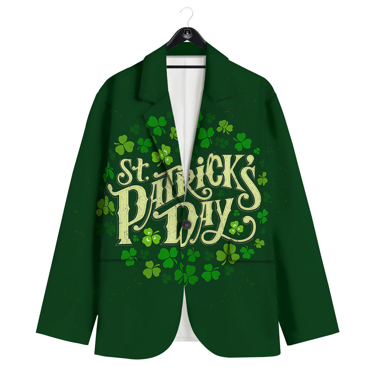 Saint Patrick's Day Green Clover Print Men's Sport Coat