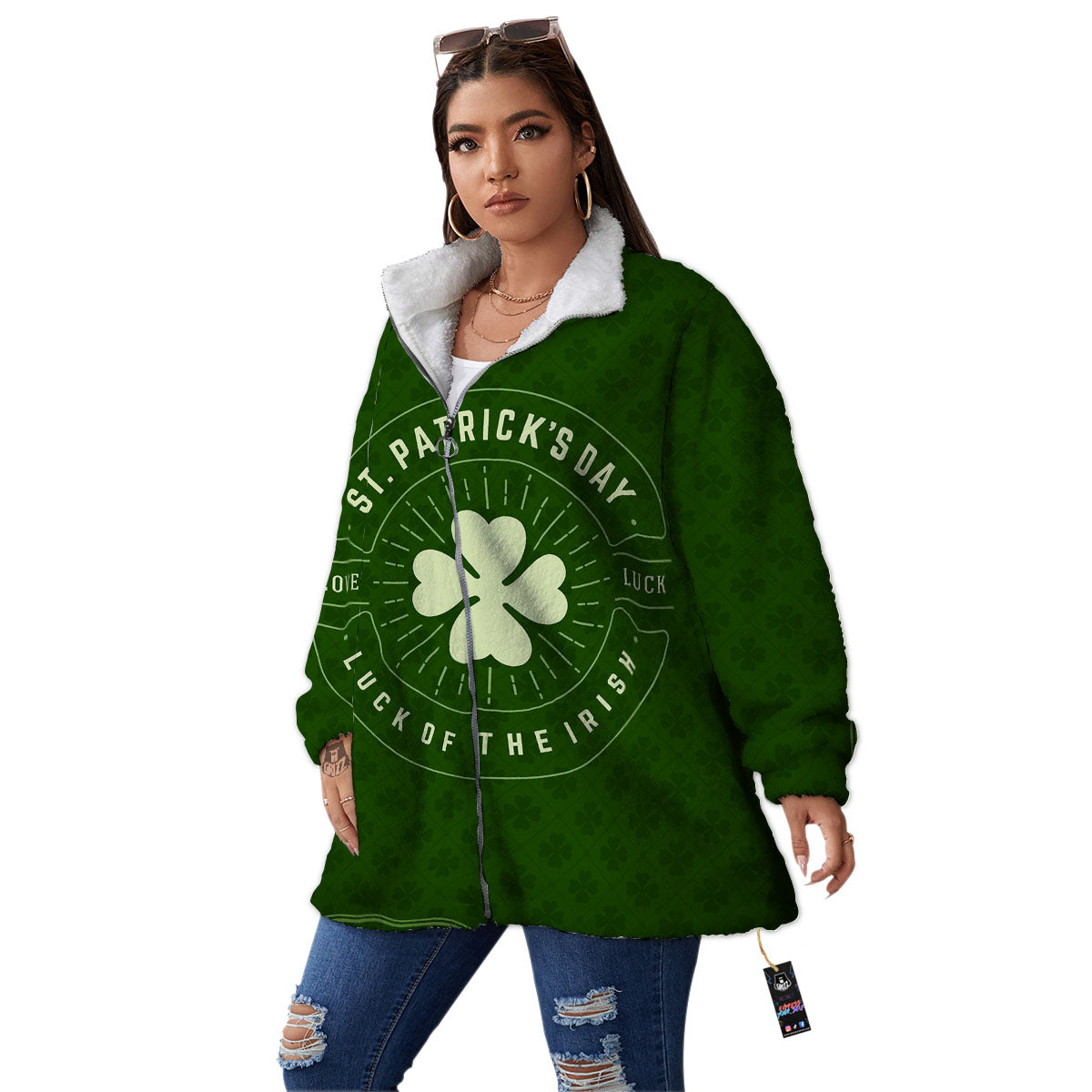 Saint Patrick's Day Irish Clover Print Women's Sherpa Jacket