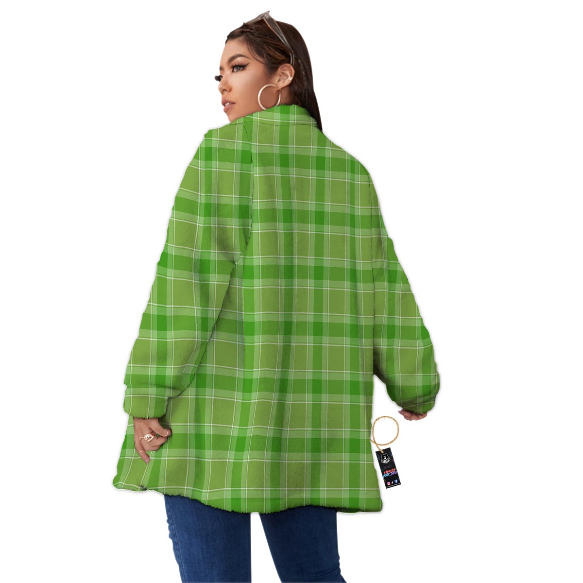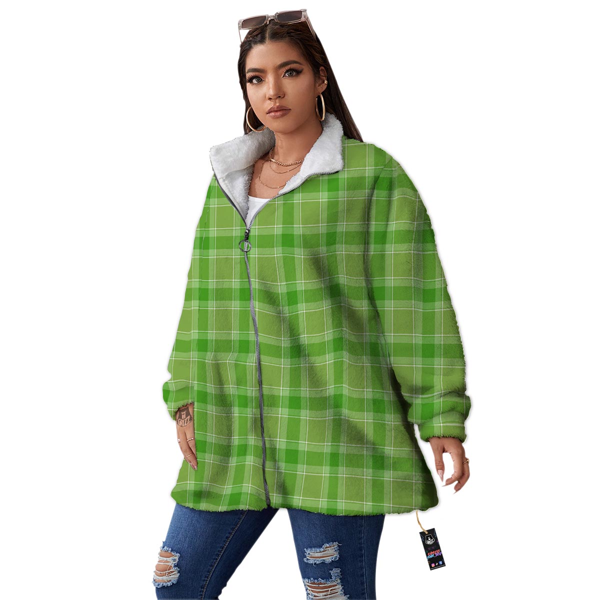 Saint Patrick's Day Shamrock Plaid Print Pattern Women's Sherpa Jacket