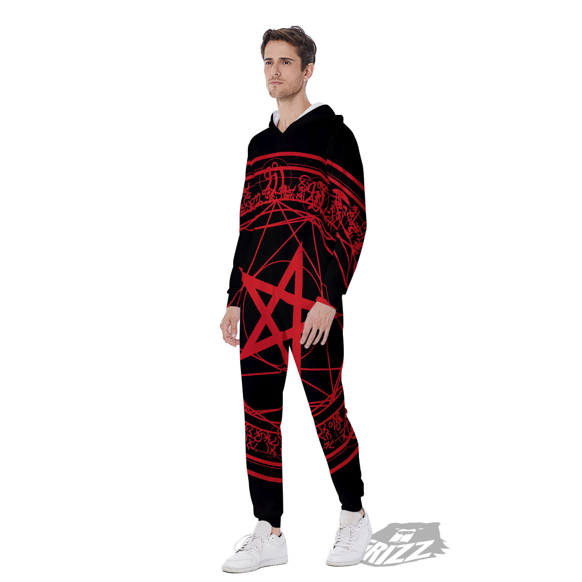 Satanic Pentagram Red And Black Print Men's Jumpsuit