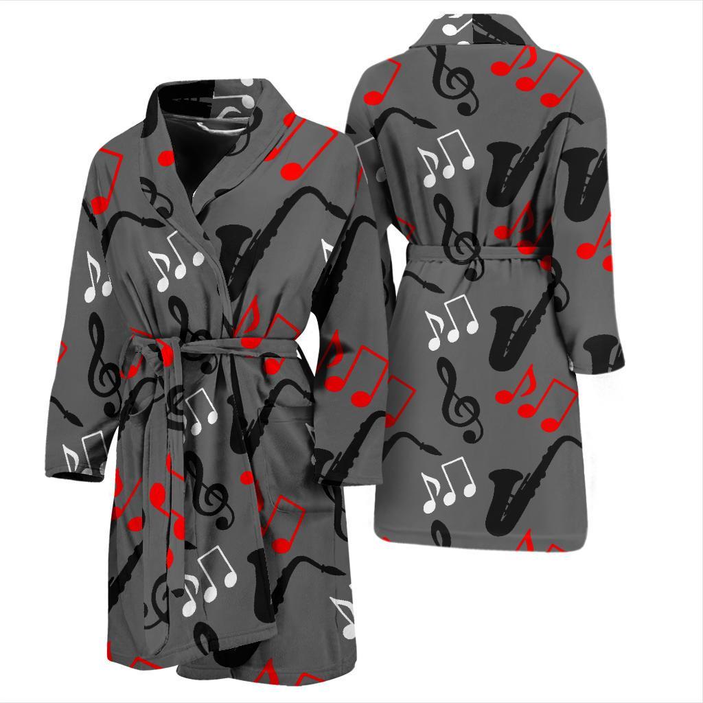 Saxophone Pattern Print Men Long Robe
