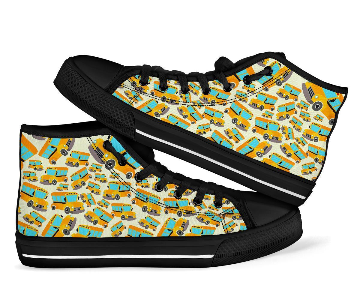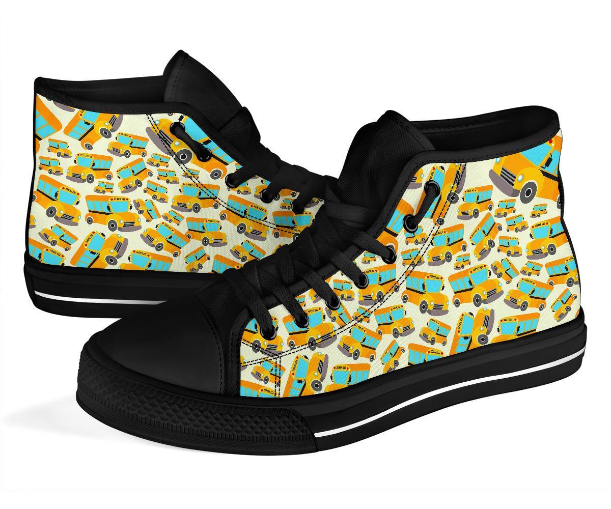 School Bus Pattern Print Men Women's High Top Shoes