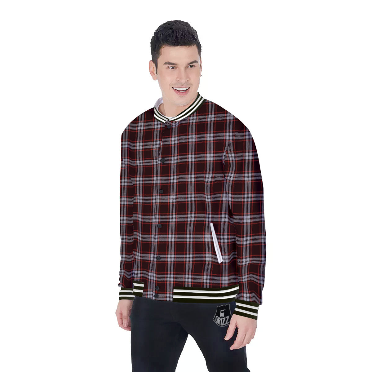 Scottish Plaid Grey Black And Red Print Baseball Jacket