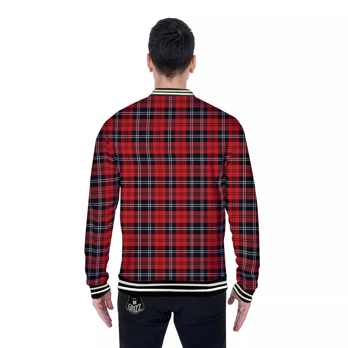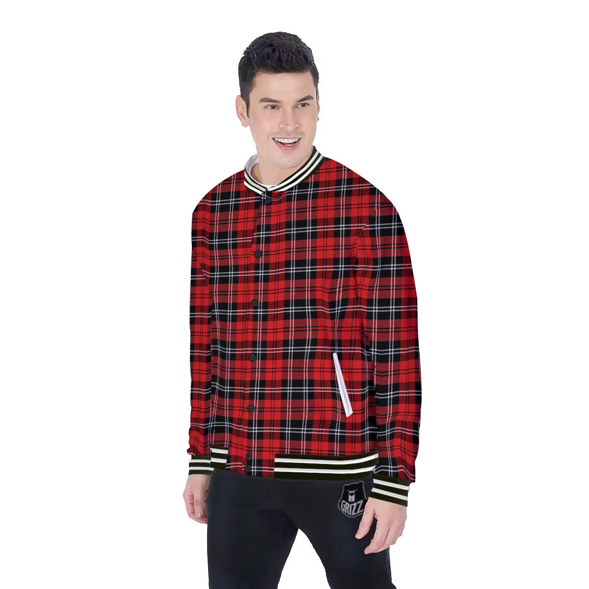 Scottish Plaid Red Black And White Print Pattern Baseball Jacket