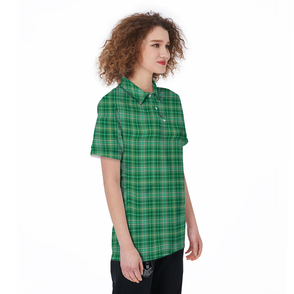 Scottish Plaid St. Patrick's Day Print Pattern Women's Golf Shirts