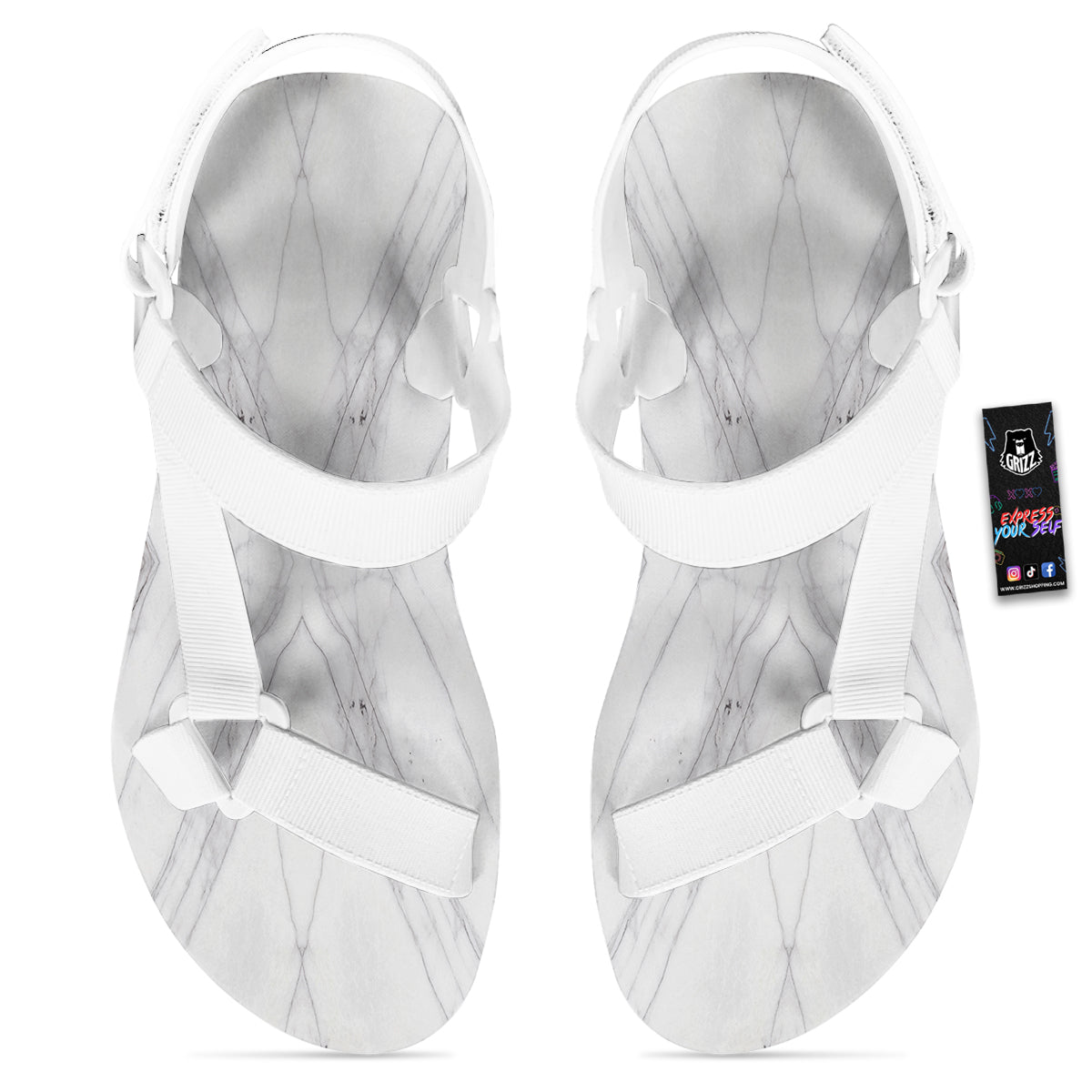 Scratch Marble White Gray Print Pattern White Open Toe Sandals