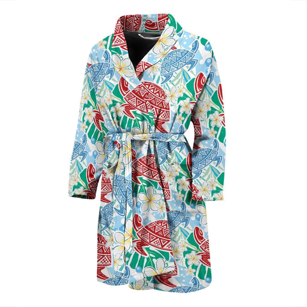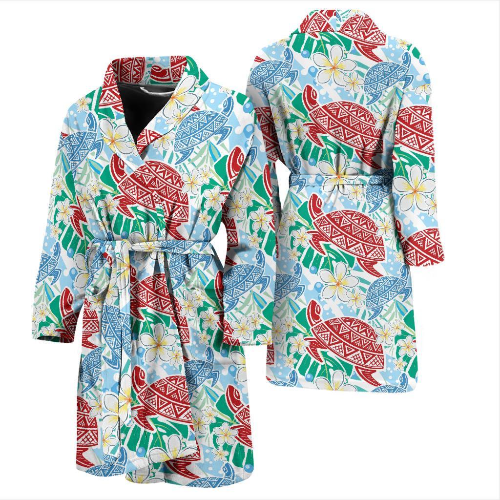 Sea Turtle Floral Hawaiian Pattern Print Men Long Robe