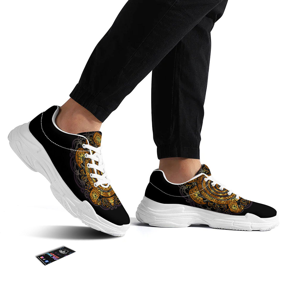 Sea Turtle Golden Tribal Print White Chunky Shoes