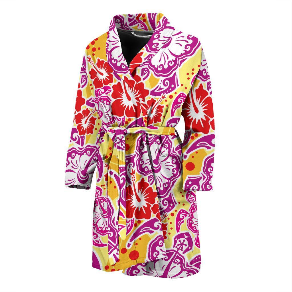 Sea Turtle Red Hibiscus Hawaiian Pattern Print Men Long Robe
