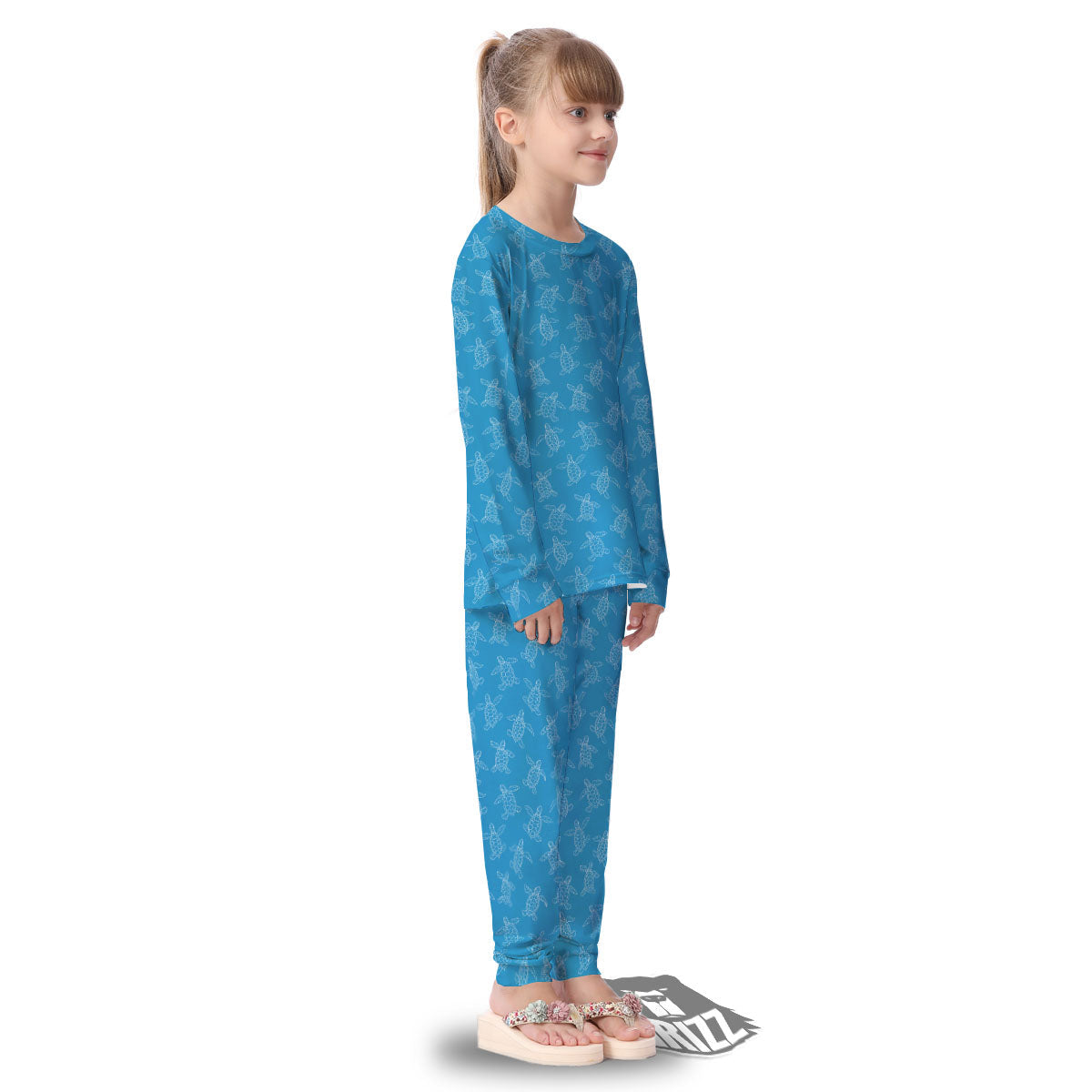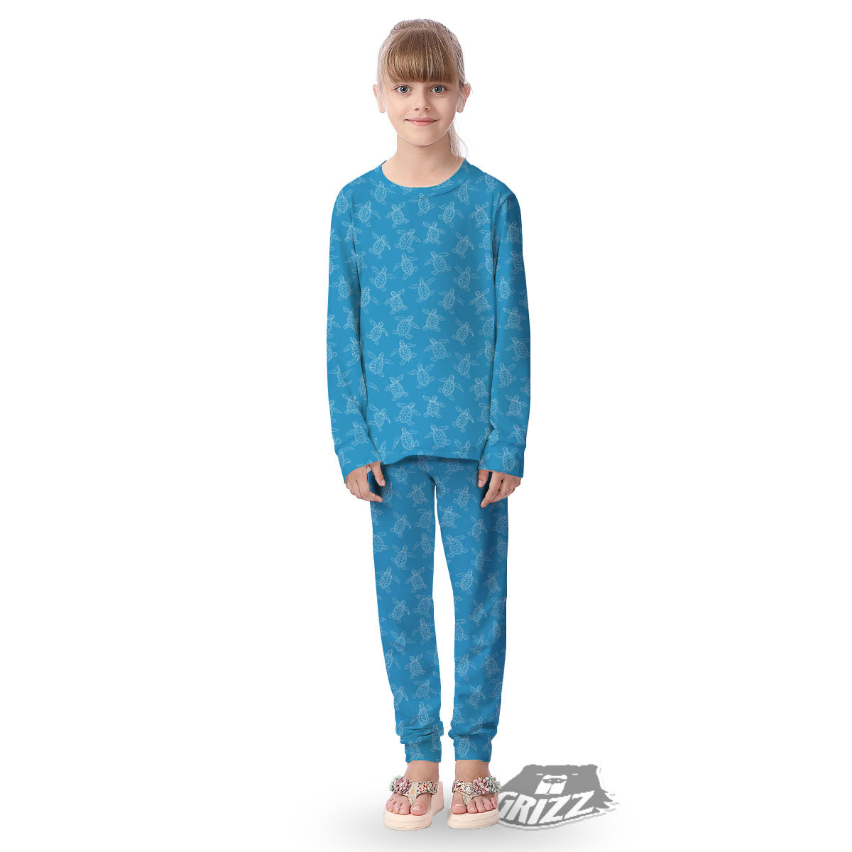 Sea Turtle White And Blue Print Pattern Kid's Pajamas