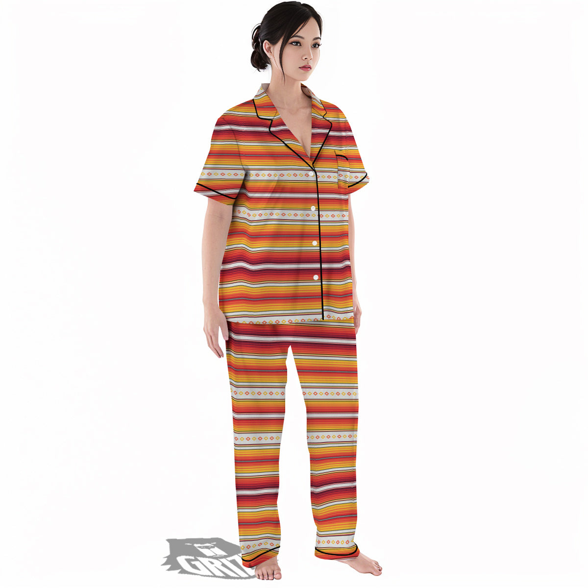 Serape Ethnic Boho Stripes Mexican Orange Print Women's Pajamas Set