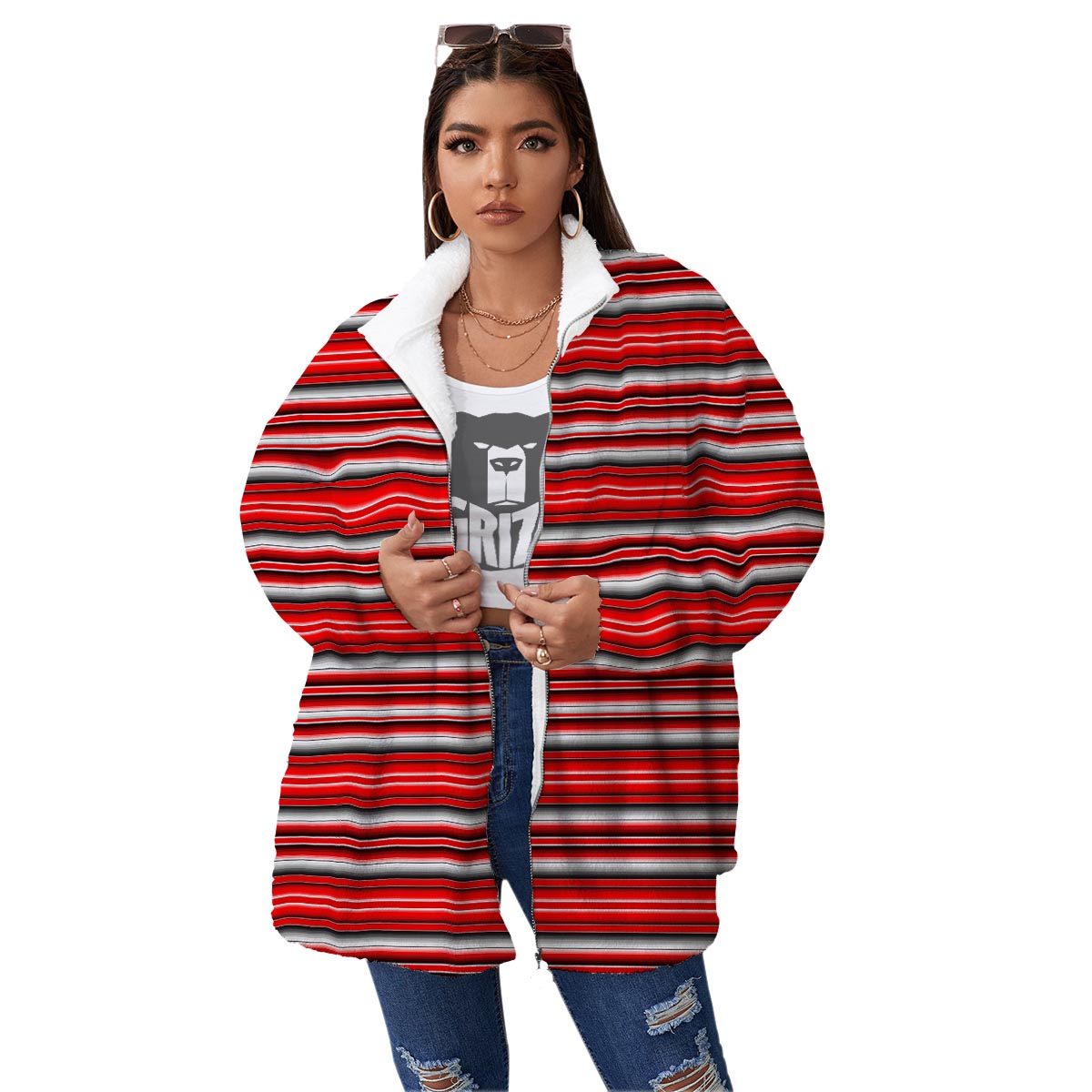 Serape Tribal Mexican Print Pattern Women's Sherpa Jacket
