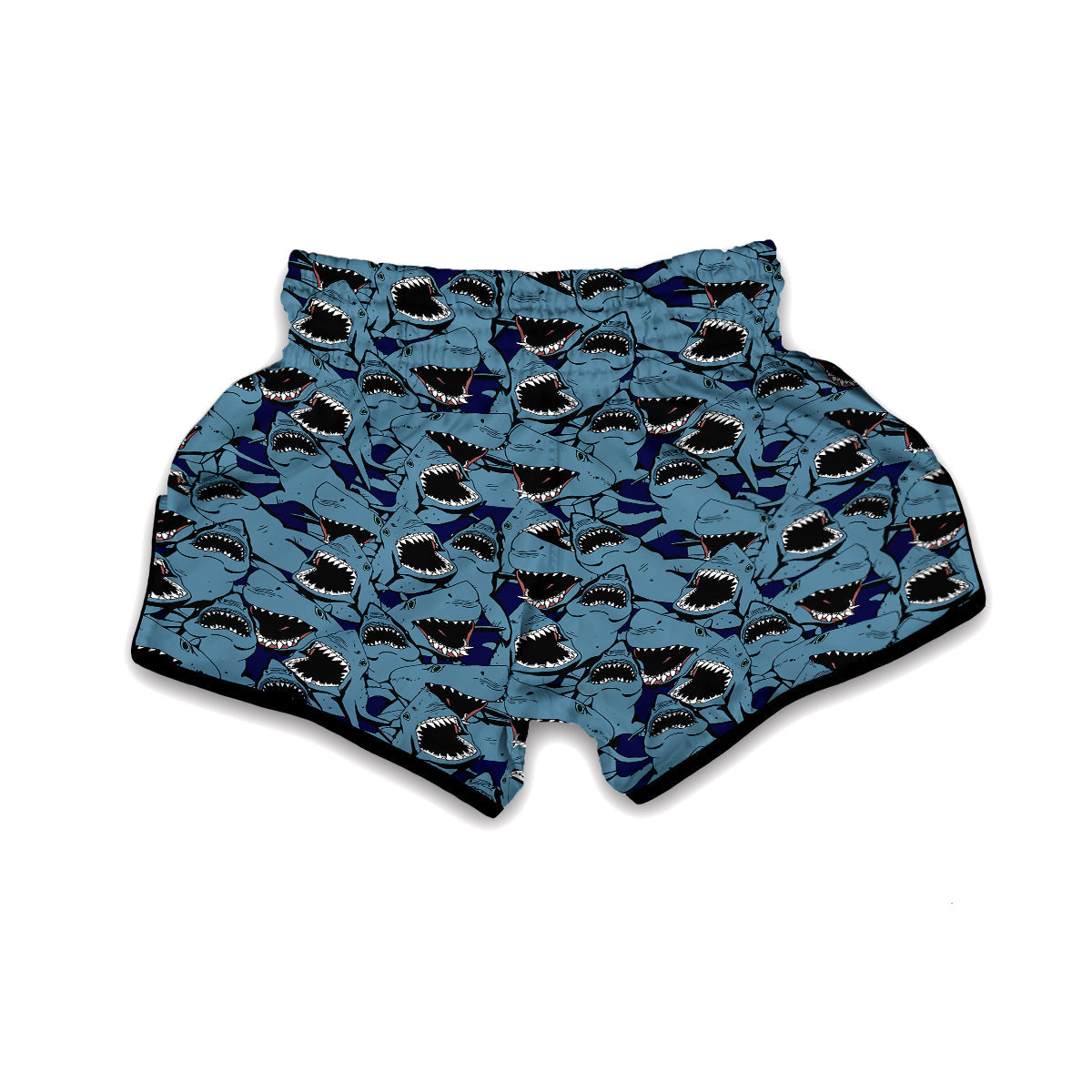 Shark Circling Pattern Print Muay Thai Boxing Shorts